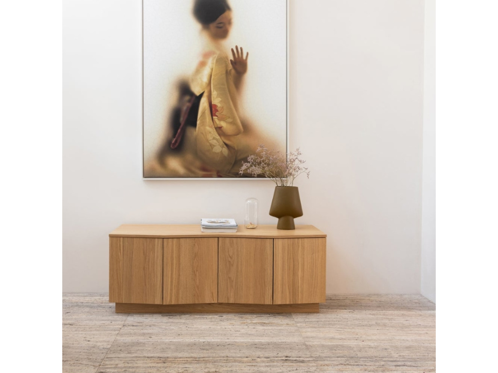 TV stolek Mora od značky WOOOD bude skutečným estetickým a praktickým kouskem vašeho obývacího pokoje, jelikož nabízí velkorysý úložný prostor v podobě 4 polic. Stolek je vyrobený z dubové dýhy s certifikací FSC, čímž dbá na udržitelnost a ochranu přírodních zdrojů. Nechte se okouzlit spojením krásy přírodního odstínu dřeva a jednoduchým, funkčním designem s promyšlenými detaily! TV stolek nemusí být použit jen v obývacím pokoji – v chodbě poslouží jako komoda, jejíž desku využijete k vystavení dekorací. Zkombinujte tento kousek s dalšími produkty z této kolekce a vytvořte si tak dokonale sjednocený interiér.