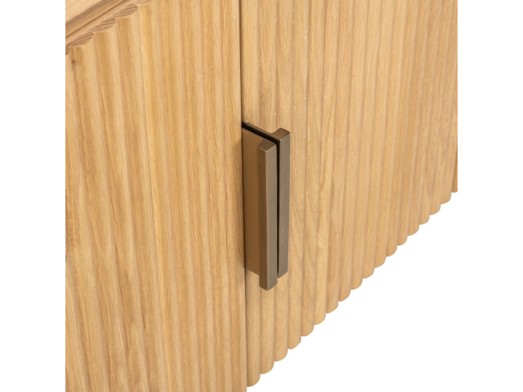 TV stolek Belfort z dubových lamel bude ideálním místem pro umístění vaší televize, který s sebou navíc přinese úložný prostor v podobě 4 polic. Dřevěná konstrukce je vkusně doplněna o kovovou zlatou podnož, která rustikálnímu stolku dodá nádech elegance. Zadní deska je opatřeny praktickými otvory, díky kterým nebude kazit celkový dojem žádná nevzhledná kabeláž. Dopřejte vašemu interiéru hřejivou atmosféru s novým designovým kouskem. V sérii Belfort od značky Richmond navíc najdete další stylový nábytek, který stolek skvěle doplní.
