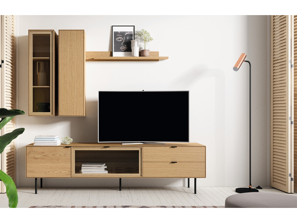 Dubový TV stolek Somcasa Tulsa vnese do vašeho domova moderní nádech a skandinávský styl. Stolek se pyšní funkčním designem, který představuje nesmrtelnou kombinaci dřeva, skla a kovu. Přírodní materiály spolu s černým kovem dodají stolku patřičnou eleganci. Korpus je vyroben z dubové dýhy a doplňují ho dvířka a zásuvky s měkkým zavíracím systémem Soft closing. Stolek disponuje dostatkem úložného prostoru v podobě dvou zásuvek z dubového masivu. Prosklenou část i místo na stolku můžete využít na vaše oblíbené dekorace či květiny. Stabilitu zajišťuje lakovaná kovová podnož, jež působí lehkým vzdušným dojmem. Tento stylový kousek se bude skvěle vyjímat například v moderním i industriálně laděném interiéru, kde ho nejlépe doplní nábytek ze stejnojmenné kolekce.