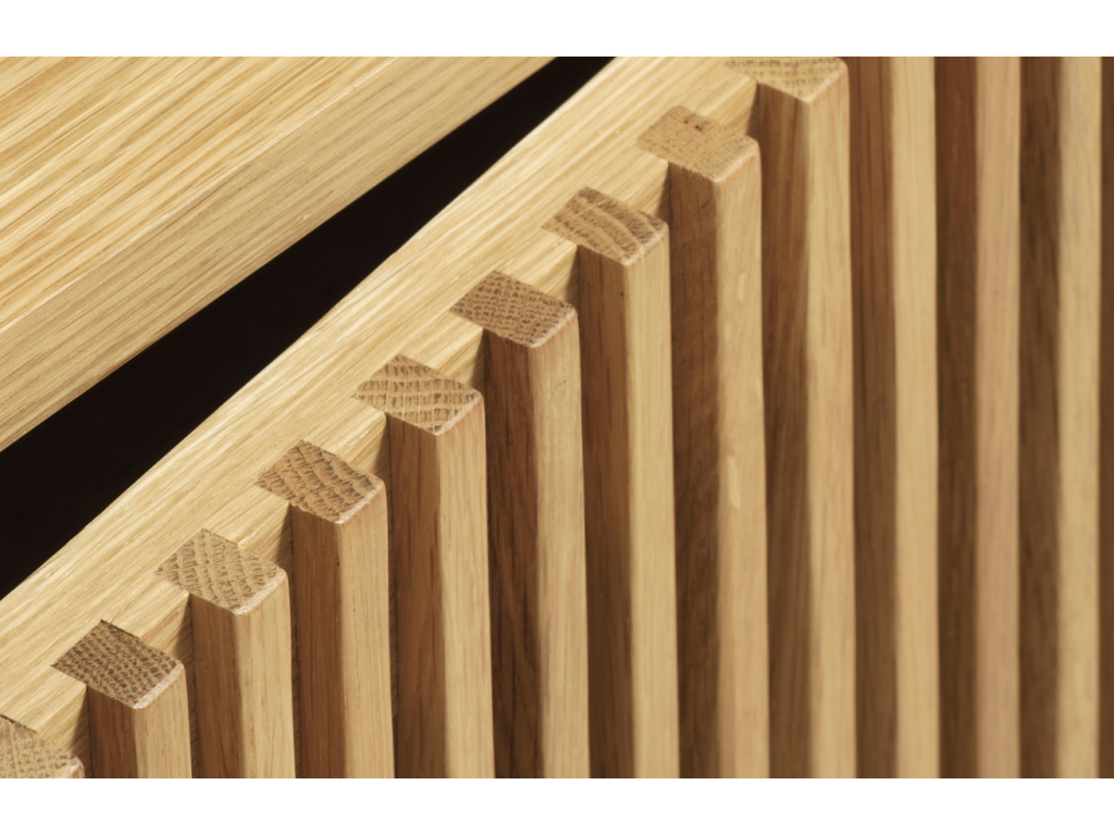 TV stolek Tiber značky Unique Furniture skvěle doladí přírodně laděné interiéry. Za originálně řešenými, poloprůhlednými dvířky TV stolek ukrývá poměrně velkorysý úložný prostor se čtyřmi policemi. Pro ten jistě najdete využití nejen v obývacím pokoji či ložnici, ale také třeba v chodbě. Stolek je vyroben z odolného masivního dubového dřeva a dýhy s certifikací FSC, což zaručuje šetrnost k životnímu prostředí. Nechte se okouzlit spojením krásy přírodního odstínu dřeva a minimalistického, ale funkčního designu s důmyslnými detaily! Kolekce Tiber navíc zahrnuje i komody.