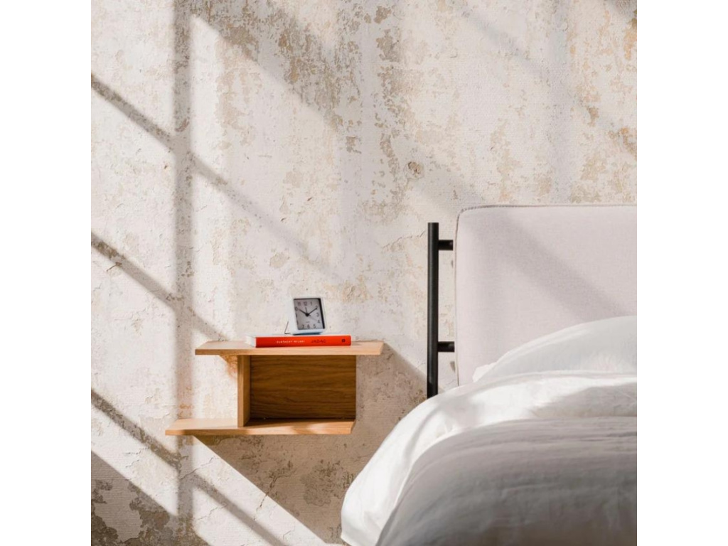 Stylový noční stolek Tann zaujme svým minimalistickým vzhledem. Korpus vyrobený z dřevotřískové desky potažen dubovou dýhou v přírodní barvě disponuje otevřenými policemi, kam pohodlně odložíte knihu, telefon či brýle. Oživte svůj prostor s tímto krásným nočním stolkem, který je závěsný a díky univerzálnímu designu si ho může dovolit většina interiérů. Využití nemusí najít jen v ložnici, skvěle se hodí také jako úložný prostor navíc třeba do předsíně. Tento kousek nabízíme v levé i pravé variantě.