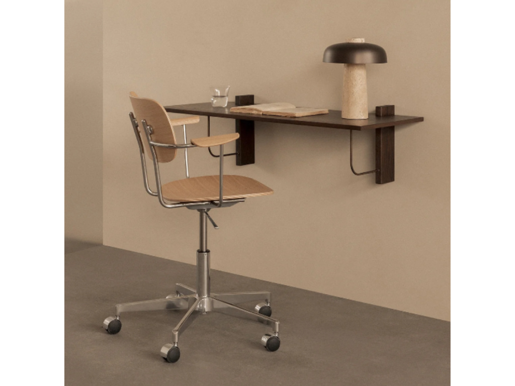 Udělejte si radost atypickým nástěnným stolem CORBEL od značky AUDO. Stůl je navržený tak, aby představoval praktickou pracovní plochu v ložnici nebo v kanceláři. Díky unikátní konstrukci pro montáž na zeď je ideální do malých prostorů – toto řešení skvěle šetří místo. Je vyroben kombinací masivního dubového dřeva, dubové dýhy, kovu a MDF. Výborně ho sladíte s minimalistickým a industriálním interiérem. Spárujte tuto designovku s nástěnnou policí ze stejnojmenné série a vytvořte tak dokonalou domácí kancelář!