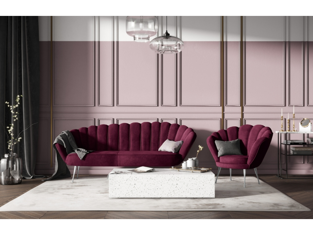 Třímístná pohovka Kingston značky Cosmopolitan Design se vyznačuje jemným prošíváním, které jí dodává elegantní a vzdušný vzhled. Jemně lesklé sametové čalounění ve fialovém odstínu je hebké a příjemné na dotek. Tkanina je velmi odolná proti oděru a absorpci tekutin, čímž zaručí dlouhodobé používání bez známek opotřebení. Celkový design pohovky doplňuje stříbrná kovová podnož. Pro dokonale sladěný sedací kout doporučujeme doplnit pohovku o křeslo ze stejnojmenné série. Pohovka je dostupná v 11 barevných provedeních, od šedých tónů až po výrazné a pestré barvy. Užijte si pohodlí a styl v jednom!