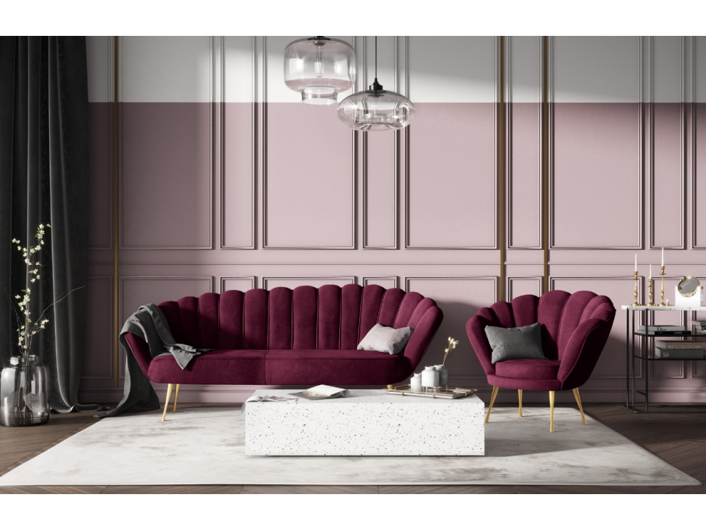 Třímístná pohovka Kingston značky Cosmopolitan Design se vyznačuje jemným prošíváním, které jí dodává elegantní a vzdušný vzhled. Jemně lesklé sametové čalounění ve fialovém odstínu je hebké a příjemné na dotek. Tkanina je velmi odolná proti oděru a absorpci tekutin, čímž zaručí dlouhodobé používání bez známek opotřebení. Celkový design pohovky doplňuje zlatě lakovaná kovová podnož. Pro dokonale sladěný sedací kout doporučujeme doplnit pohovku o křeslo ze stejnojmenné série. Pohovka je dostupná v 11 barevných provedeních, od šedých tónů až po výrazné a pestré barvy. Užijte si pohodlí a styl v jednom!