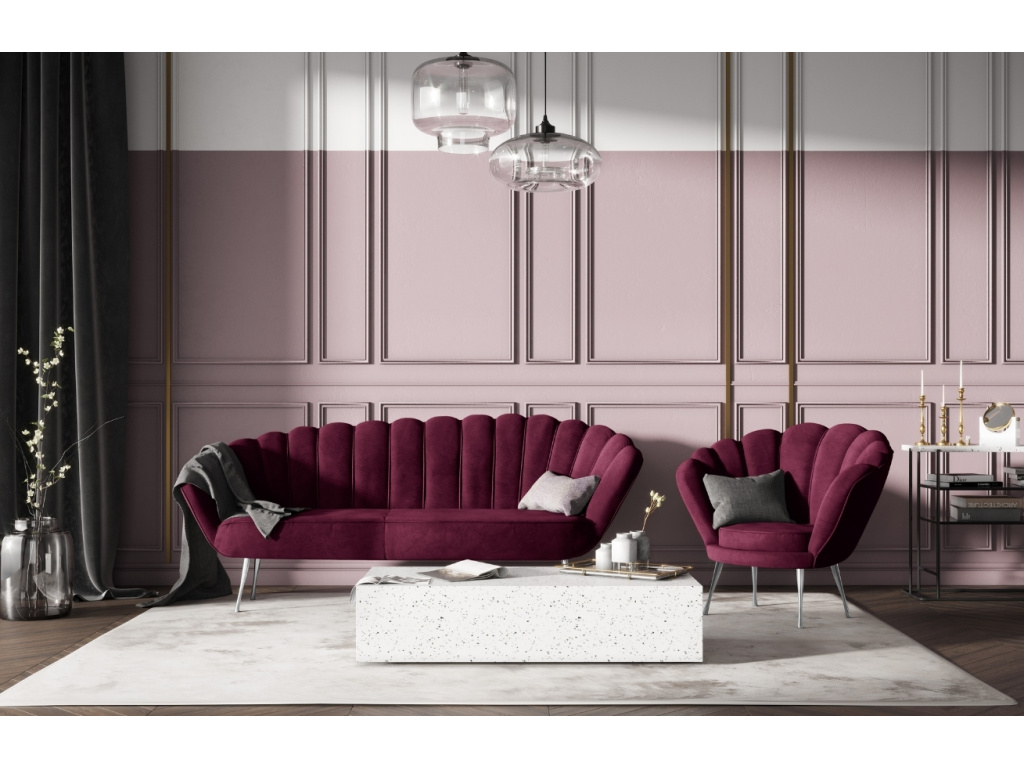 Křeslo Kingston značky Cosmopolitan Design představuje spojení elegance a neotřelého vzhledu. Jeho jemně lesklé sametové čalounění ve fialovém odstínu je hebké a příjemné na dotek. Tkanina je velmi odolná proti oděru a absorpci tekutin, čímž zaručí dlouhodobé používání bez známek opotřebení. Celkový design křesla doplňuje stříbrná kovová podnož. Pro dokonale sladěný sedací kout doporučujeme křeslo doplnit o pohovku ze stejnojmenné série. Křeslo je dostupné v 11 barevných provedeních, od šedých tónů až po výrazné a pestré barvy. Užijte si pohodlí a styl v jednom!