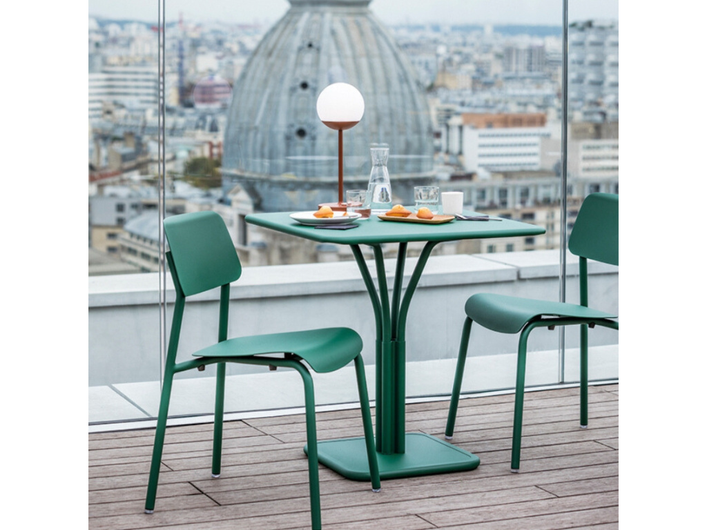 Tento zahradní stůl je ideální volbou jak na zahrádku kavárny, tak na malý balkón, a to díky svým kompaktním rozměrům. Atraktivní je i možnost volby ze široké palety odstínů. Vyrábí se z prvotřídních materiálů a je testován tak, aby splňoval standardy kvality evropských norem (NF EN 581-1 a NF EN 581-2). Hliníková podnož se skládá ze čtyř trubek, které se sbíhají do jednoho celku, což samo o sobě vytváří zajímavý prvek u jinak nezdobeného designu. Exkluzivní systém antikorozní úpravy pro venkovní použití a anti-UV práškový lak (standardizované testy AFNOR) dělají ze stolu unikátní kousek zahradního nábytku, který lze variabilně kombinovat s dalšími produkty z řady Luxembourg – společně vykouzlí atmosféru pařížských kaváren!