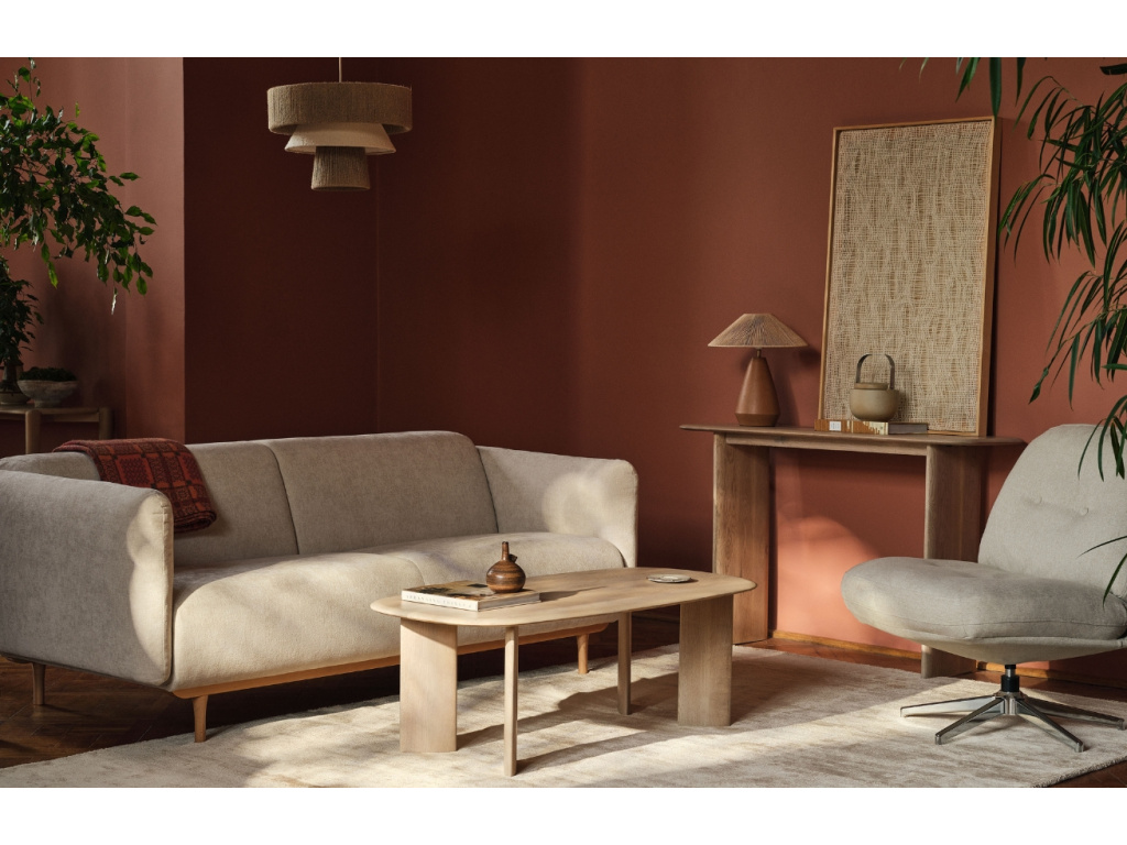 Kolekce Noomi přinese do vašeho domova lehkost, jemnost a přirozenou krásu severského designu. Ať už zvolíte dvoumístnou nebo prostornější trojmístnou pohovku, každá z nich je navržená tak, aby vytvořila harmonické místo pro odpočinek i sdílené chvíle. Její čisté linie, štíhlé područky a vysoká buková podnož působí tak lehce, jako by se vznášela nad podlahou. Čalounění ze strukturované látky dodává na hloubce i charakteru. Jemná textura vybízí k doteku, zatímco neutrální odstíny ladí s každým interiérem. Středně měkký sedák poskytuje přirozenou oporu i pohodlí při každodenním odpočinku. Díky své subtilní stavbě se Noomi hodí i do menších prostor, aniž by působila stroze nebo chladně.
