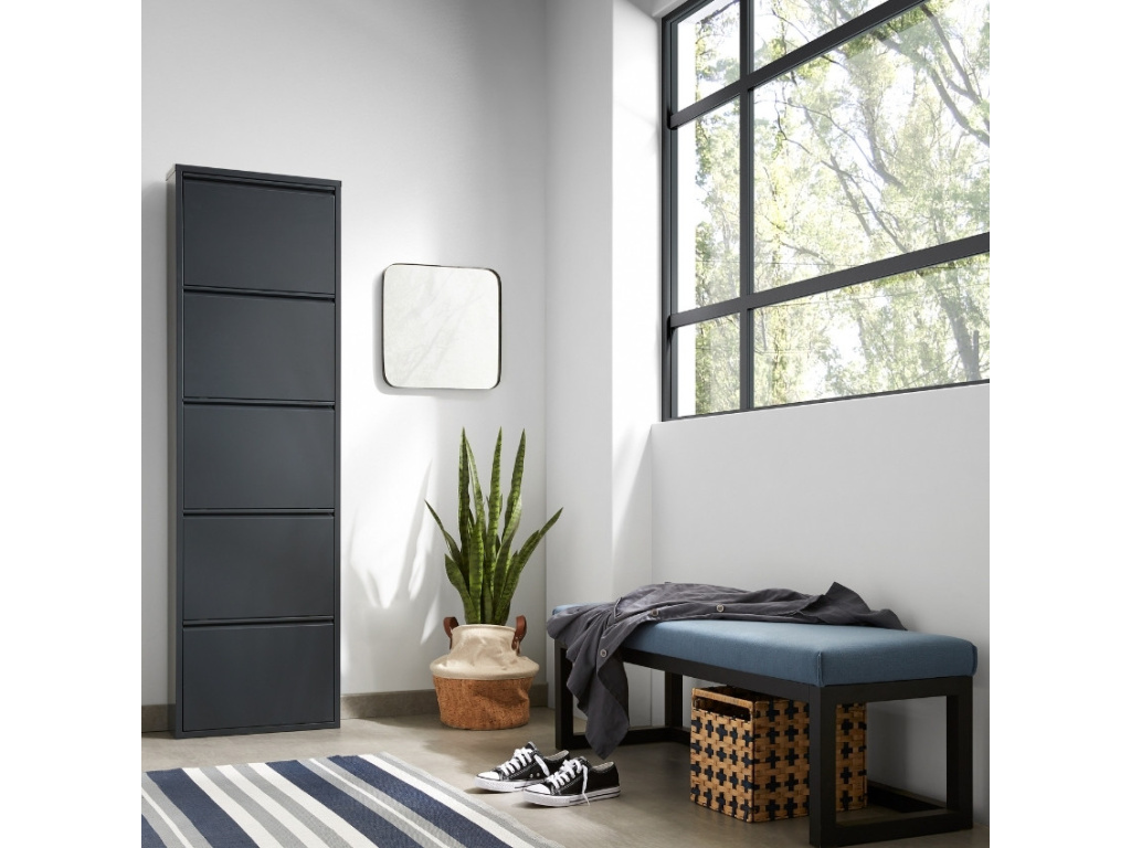 Kovový botník Kave Home Ode si oblíbíte díky jeho minimalismu a velkému úložnému prostoru. V botníku najdete celkem pět výklopných zásuvek, do kterých se vejde až 15 párů bot, a tak vaše předsíň už nikdy nebude zaplněná. Praktickým prvkem je také možnost připevnit botník na zeď. Ode se hodí do moderních, světlých chodeb a předsíní.