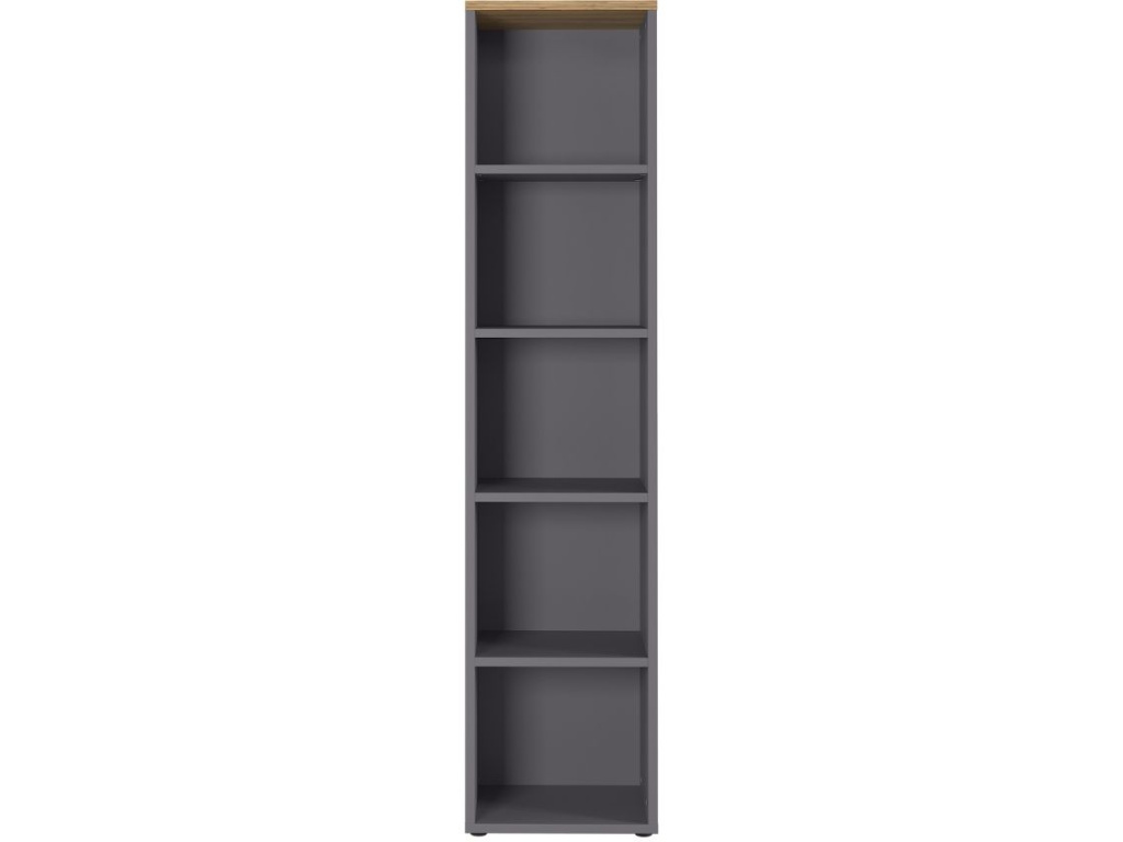 Moderní kancelářský regál Agenda od značky GERMANIA je perfektním kouskem do vaší kanceláře. Kombinace matné, grafitově šedé barvy laminátového korpusu a dubového dekoru na vrchní desce vytváří jemný a čistý vzhled, který do vašeho interiéru vnese nádech minimalistického designu. Prostorné úložiště zajišťuje 5 otevřených polic, díky čemuž pohodlně uložíte velké množství všeho inventáře. Otevřené police poskytují rychlý přístup k často používaným předmětům. Povrchová úprava korpusu z melaminové pryskyřice poskytuje nárazuvzdorný a vlhkosti odolný povrch. Díky nárazuvzdorným ABS hranám máte vyšší jistotu odolnosti, díky čemuž se skvěle hodí nejen do komerčních prostor, ale také do domácích pracoven. Radost také ale jistě udělá i jako praktická knihovna do moderního bytového prostoru. Doporučujeme kombinace všech produktů z řady Agenda.