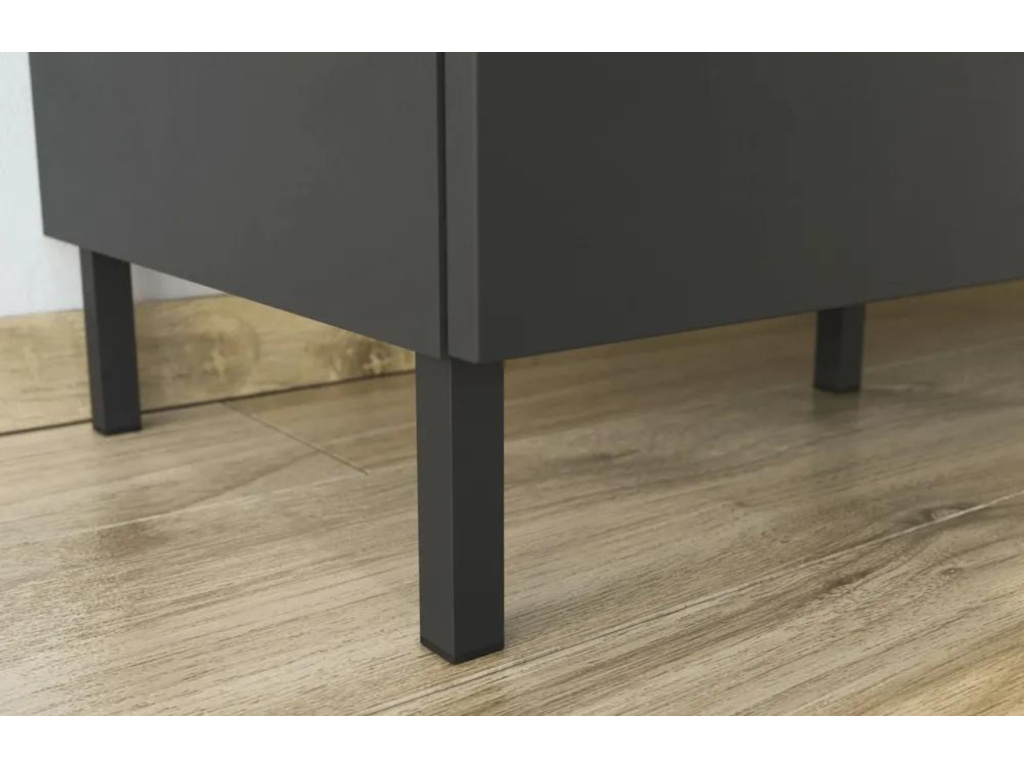 TV stolek California bude stylovou ozdobou každého moderního interiéru. Korpus v grafitově šedé barvě z dřevotřísky je potažen melaminovou pryskyřicí, která stolku dodává osobitý vzhled. Minimalistický design TV stolku California podtrhuje vrchní deska v dekoru dubu. Výhodou je možnost zvolit si ze dvou druhů podnože – v balení najdete vyšší i nižší provedení. Sami si tak vyberete, jaká bude vašemu interiéru více slušet. Úložný prostor je prakticky rozčleněn do uzavíratelných polic a dvou zásuvek.