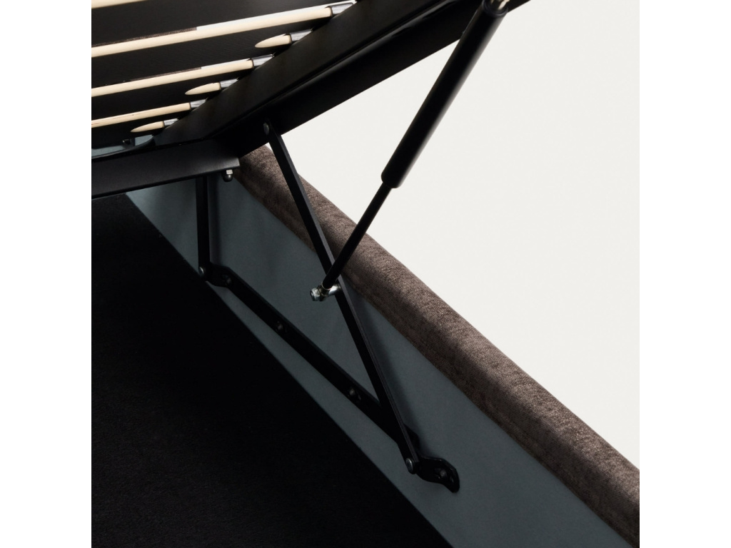 Postel Dafra spojuje moderní vzhled, elegantní linie a praktické využití prostoru. Její měkké, prostorné čelo dodá ložnici příjemně útulnou atmosféru – díky žinylkové látce v tmavě hnědém odstínu působí interiér hřejivě a elegantně zároveň. Potah je navíc plně snímatelný, což umožňuje jeho snadné čištění a udržení dlouhodobě svěžího vzhledu. Kvalitní žinylka je jemná na dotek, odolná vůči světlu a navržena tak, aby obstála při každodenním používání. Certifikace OEKO-TEX® STANDARD 100 potvrzuje, že její výroba je ekologicky bezpečná a zdravotně nezávadná. Praktickou součástí postele je úložný prostor, který se otevírá pomocí plynových pístů a nabízí dostatek místa pro lůžkoviny i sezónní textilie. Dafra je ideální pro ty, kdo hledají nejen krásný ale hlavně funkční kus nábytku, který každý váš večer promění v příjemný rituál odpočinku.