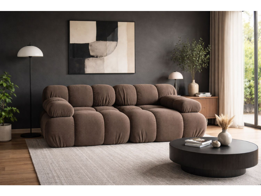 Dvoumístná pohovka Bellis spojuje ikonický design s maximálním pohodlím. Její elegantní zaoblené linie a propracované čalounění vdechnou interiéru jedinečný styl inspirovaný retro estetikou 70. let, doplněnou o moderní vzhled. Pružinové moduly zajišťují ideální rovnováhu mezi měkkostí a oporou, takže sezení je pohodlné i při každodenním používání. Pohovka je čalouněna výraznou 3D látkou Sonic s trojrozměrnou strukturou a jemným leskem, která podtrhuje její moderní charakter a je příjemná i odolná pro každodenní používání. K dispozici je také v dalších typech látek a barevných provedeních, takže si ji snadno přizpůsobíte svému interiéru. Bellis se stane přirozenou dominantou obývacího pokoje a vytvoří prostor, kde se snoubí styl s pohodlím. Skvěle ji doplní jednoduchý konferenční stolek a jemné textilie, které nechají vyniknout její výrazný tvar.