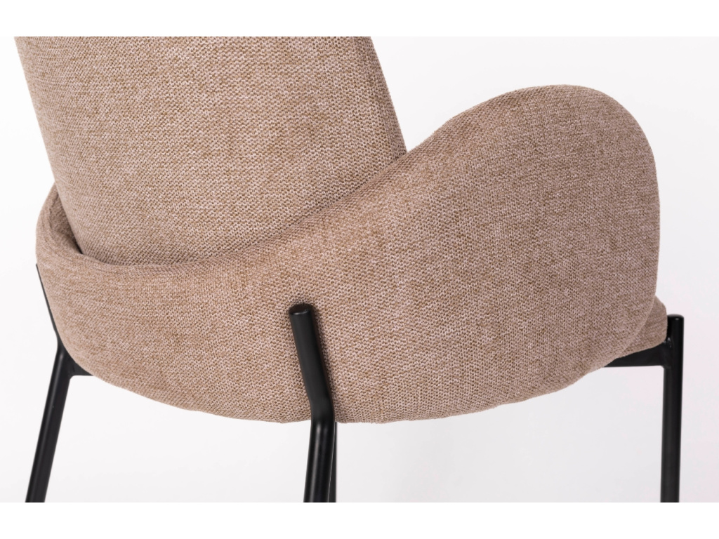 Jídelní židli TJARDA od značky White Label Living si zamilujete díky jejímu elegantnímu designu i vysokému komfortu při sezení u jídelního stolu. Její pohodlné látkové čalounění ve hnědé barvě doplňuje jednoduchá štíhlá podnož z černě lakovaného kovu. Ta celému kousku dodává lehký a vzdušný nádech. Nepřehlédnutelnou dominantu židle představují kulaté područky, které dokonale ladí s celkovým designem židle. Židle TJARDA skvěle vynikne v moderních i klasických interiérech, ale i v prostorech s vintage nádechem.