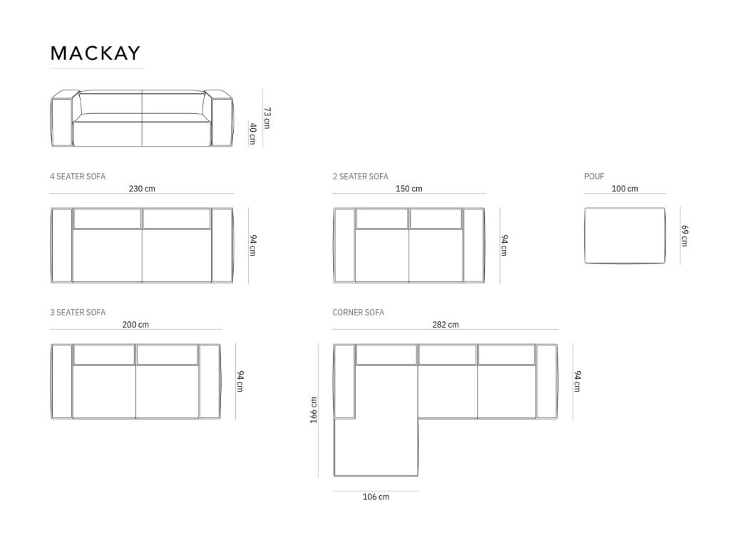 Kolekce pohovek Mackay je synonymem pro komfort a eleganci, které si zamilujete každý den. Nadčasový design s jemně tvarovanými liniemi a měkkým polstrováním zve k odpočinku a vytváří ideální prostor pro relax i společné chvíle s blízkými. Čalounění v látce Bubble zaujme sametově hebkým povrchem s plastickou strukturou drobných uzlíků a jemným leskem, který pohovce propůjčuje luxusní, proměnlivý vzhled. Tento mimořádně příjemný a odolný materiál je navíc opatřen ochrannou vrstvou WaterBlocked, díky níž rozlité tekutiny jednoduše setřete a látka zůstane bez poskvrny. Kolekce Mackay vám nabídne přesně to, co hledáte – ať už menší dvoumístnou variantu pro kompaktní prostory, trojmístnou pro rodinné večery, prostornější čtyřmístnou nebo velkorysou rohovou pro maximální pohodlí.