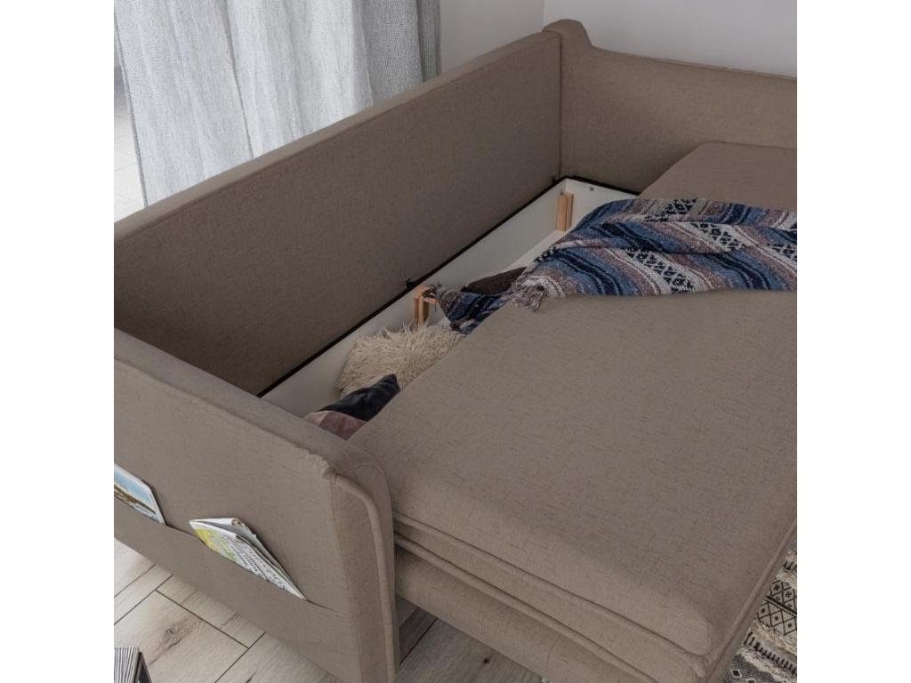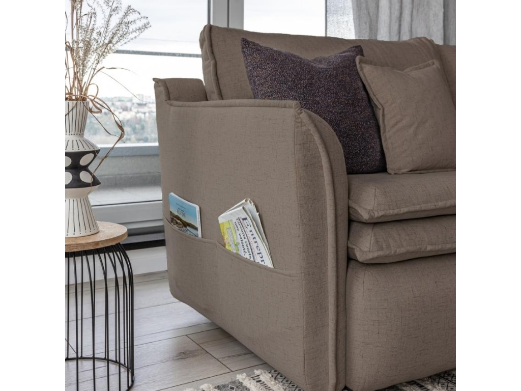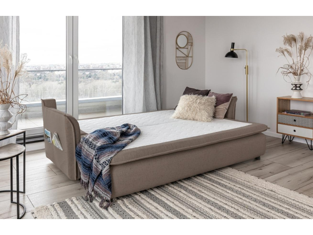 Stylová třímístná rozkládací pohovka Charming Charlie od značky Miuform vás zaujme již na první pohled svým netradičním designem. Příjemné čalounění ze strukturované látky v hnědém odstínu dodává pohovce moderní a zároveň efektivní vzhled. Inovativní použití povrchové matrace, která je nedílnou součástí pohovky, zajišťuje vysoký komfort spánku. Příjemným bonusem jsou kapsy na boční straně křesla, díky kterým získáte praktickou odkládací plochu pro váš ovladač či oblíbenou knížku. Pohovka se díky 90.000 martindale cyklům skvěle hodí nejen do moderních interiérů, ale také do komerčních prostor jako jsou hotelové lobby apod. Nechte se okouzlit pohovkou Charming Charlie. Doporučujeme kombinaci více prvků z řady Charming Charlie.