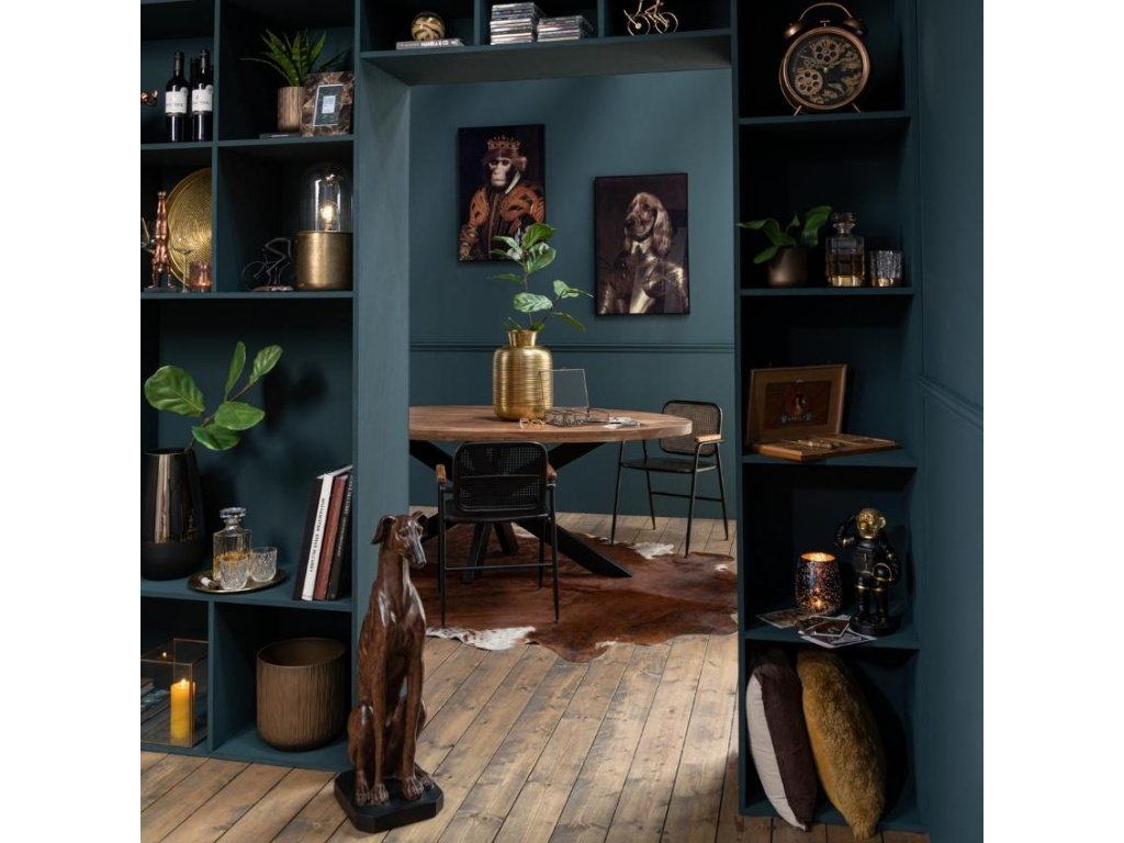 Pokud hledáte extravagantní dekoraci, která zaujme každého kolemjdoucího, soška Greyhound od značky J-Line je ideálním prvkem pro vás. Sedící chrt v přímé pozici působí, jako kdyby měl povel hlídat váš domov. Nápadná dekorace, kterou si oblíbí milovníci psů či obdivovatelé moderního stylu bydlení a originálních dekorací. Socha je velice stabilní díky podstavci a lze ji tak umístit na podlahu, parapet i polici.
