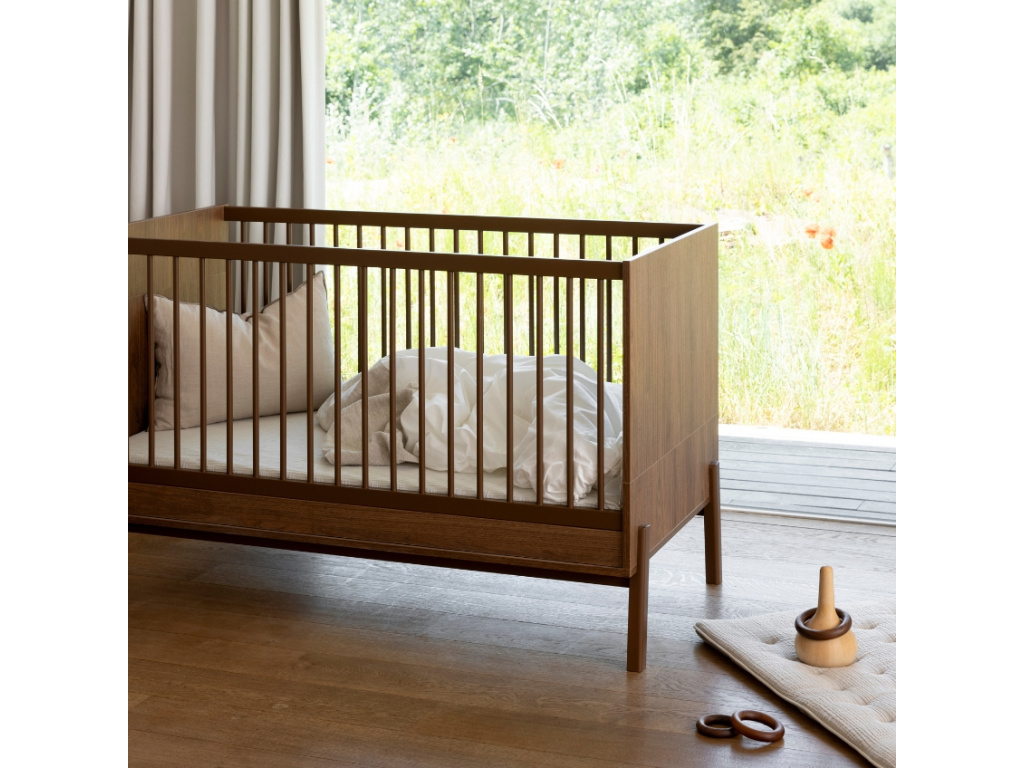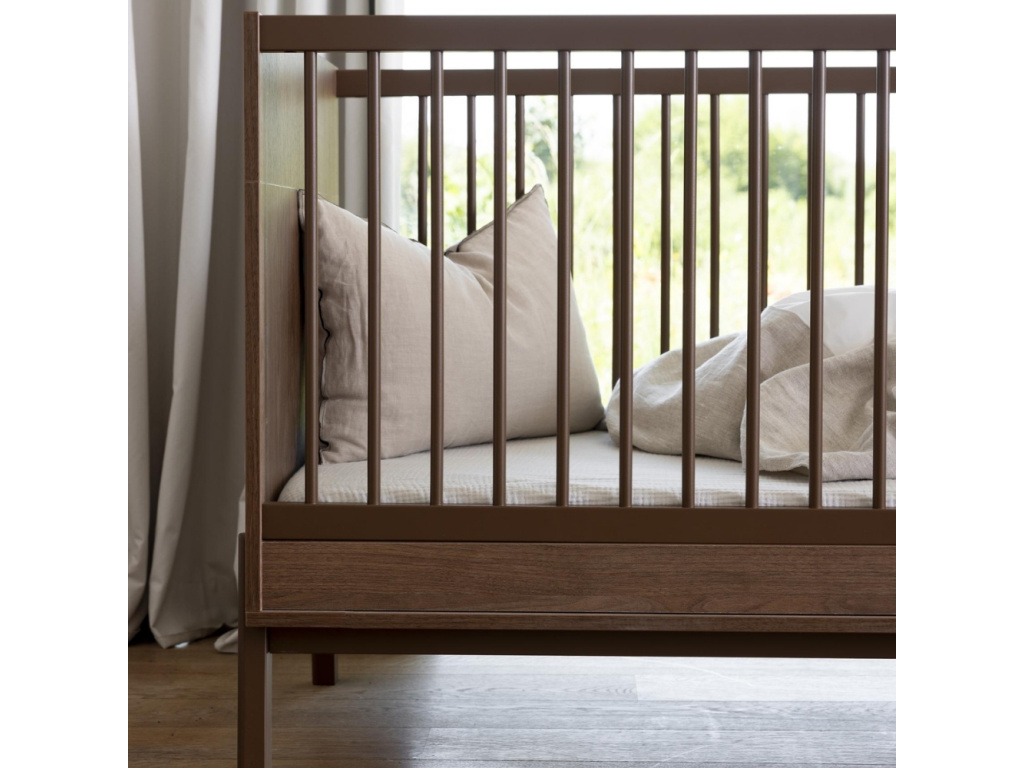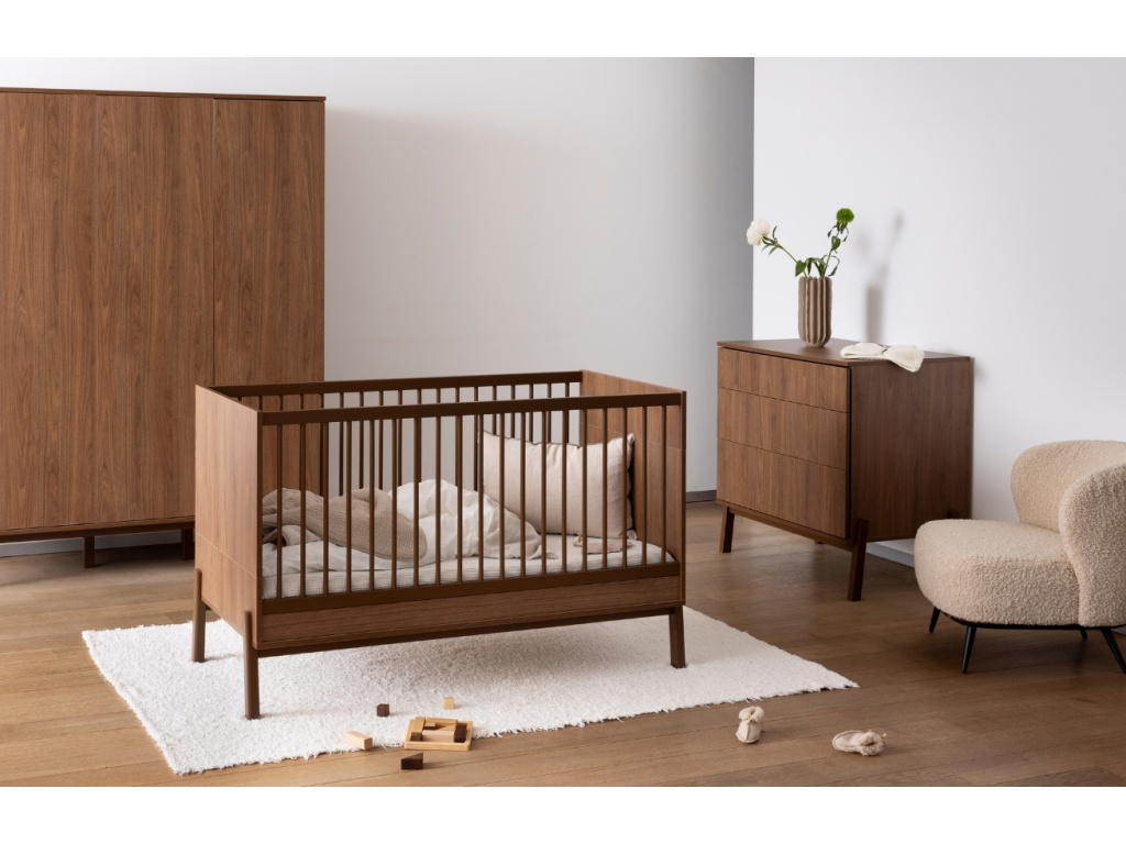 Dětská postýlka Quax Ashi v kaštanově hnědém odstínu propojuje nadčasový design s funkčností, kterou ocení každý rodič. Díky třem nastavitelným výškám roštu roste spolu s dítětem a přizpůsobí se každé fázi jeho vývoje. Jakmile nadejde čas, lze ji snadno přeměnit na otevřenou postýlku odmontováním bočnice s lištami. A později dokonce i na juniorské lůžko s pomocí prodlužovací sady (prodává se zvlášť), která zajistí delší využití. Postýlka se tak stává dlouhodobou investicí, která doprovází dítě od narození až do školních let – s důrazem na pohodlí, kvalitu a nadčasový styl. Stabilitu a pevnost zaručuje podnož z masivního bukového dřeva, zatímco netoxická povrchová úprava polyuretanovým lakem splňuje přísné bezpečnostní normy, aby vaše dítě spalo v naprostém bezpečí. Vsaďte na udržitelnost a investujte do budoucnosti – díky této sérii postelí Ashi od značky Quax, která je navržena v konceptu Good to Grow, může vaše dítě mít stejnou postel od narození až do 10 let. Pro vyladěný interiér můžete kombinovat s dalšími doplňky z řady Quax Ashi.