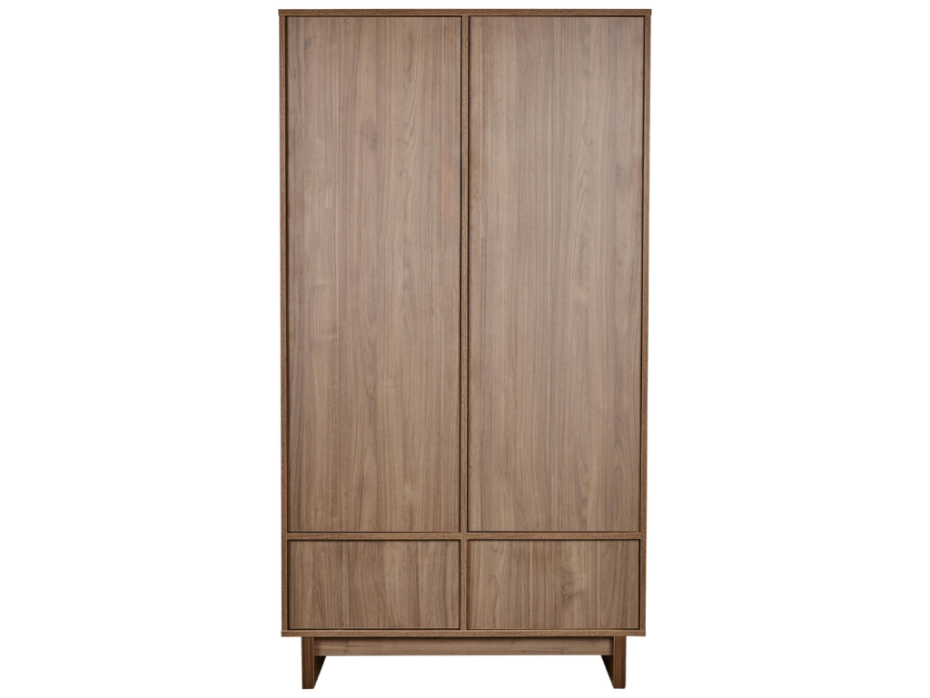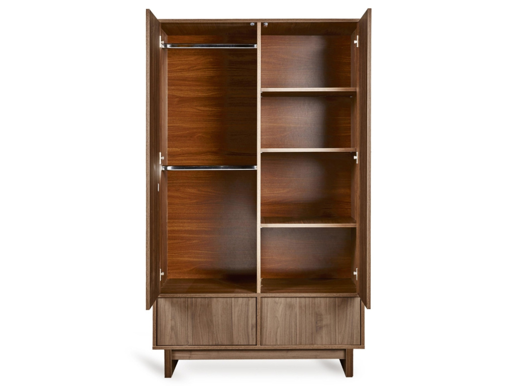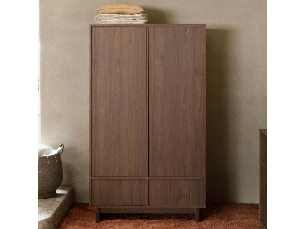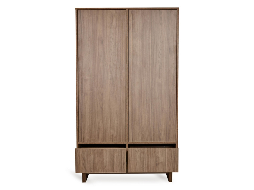 Klíčovou vlastností kolekce Kyo je univerzálnost, která se odráží i v designu této dvoudveřové šatní skříně. Uvnitř se skrývá promyšlený prostor se třemi nastavitelnými policemi, dvěma závěsnými tyčemi a dvojicí prostorných zásuvek pro maximální přehled. Na první pohled nenápadný systém otvírání push-to-open definuje celkový vzhled, který se nese v minimalistickém duchu. Díky hřejivému dekoru ořechového dřeva se hodí do každého dětského pokojíčku, ložnice i do obývacího pokoje. Kolekce Kyo nabízí širokou škálu prvků, které k sobě přirozeně ladí a vybízejí ke vzájemné kombinaci pro dokonale sladěný interiér.