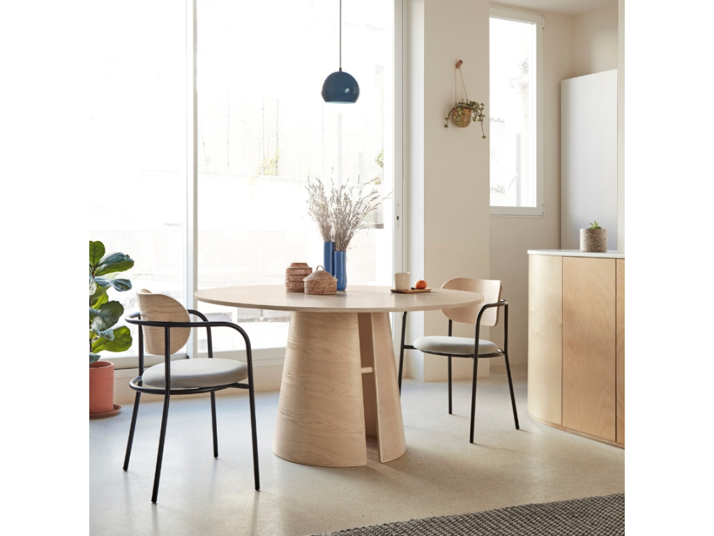Jídelní židle Eclipse od značky Teulat nachází inspiraci v klasických designech kombinujících kovové a dřevěné prvky, které tvoří přímo ikonický vzhled. Příjemnou látkou čalouněný sedák a opěradlo s dřevěným dekorem jsou tvarované s ohledem na pohodlí během dlouhého sezení. Jde o elegantní a všestranný design, který krásně splyne s okolím ať už v koutku obývacího pokoje, kolem jídelního či zasedacího stolu v kanceláři nebo umístěný v hotelové hale.