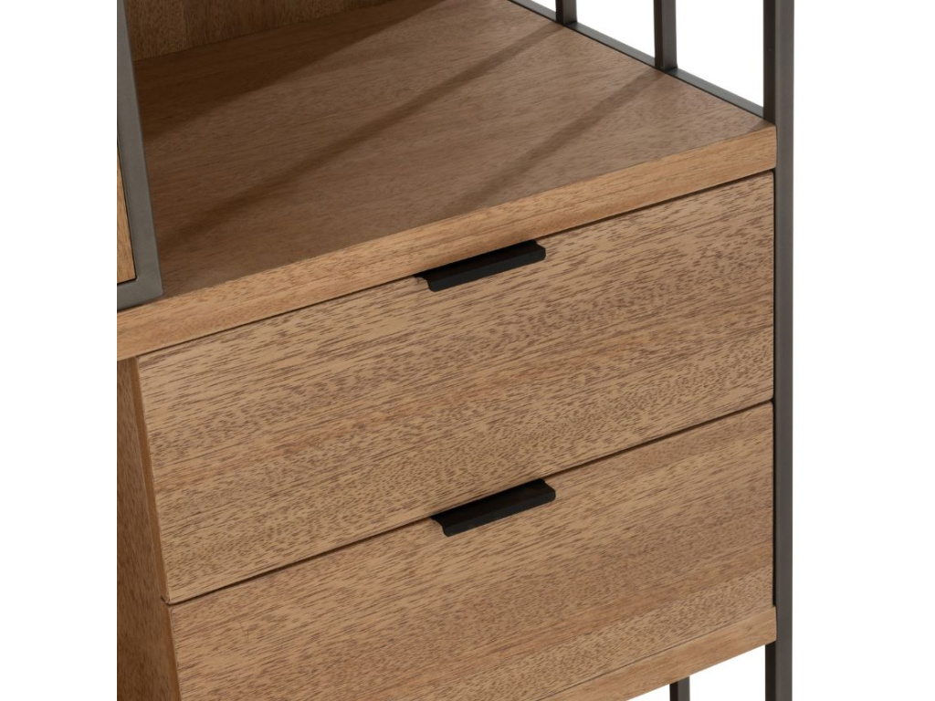 Knihovna J-line Differy je zajímavá svým bohatě členěným úložným prostorem. Najdete v ní nejen tři prostorné otevřené police, ale také dvě uzavřené police a dvě zásuvky. Můžete ji tedy využít nejen k uložení knih, ale také do ní můžete schovat nejrůznější drobnosti a věci, které nechcete, aby byly na očích. Knihovna na první pohled zaujme také svými originálně řešenými bočními stranami, které tvoří štíhlá kovová konstrukce. V sérii Differy najdete další produkty, se kterými může být vás domov perfektně designově sjednocený.