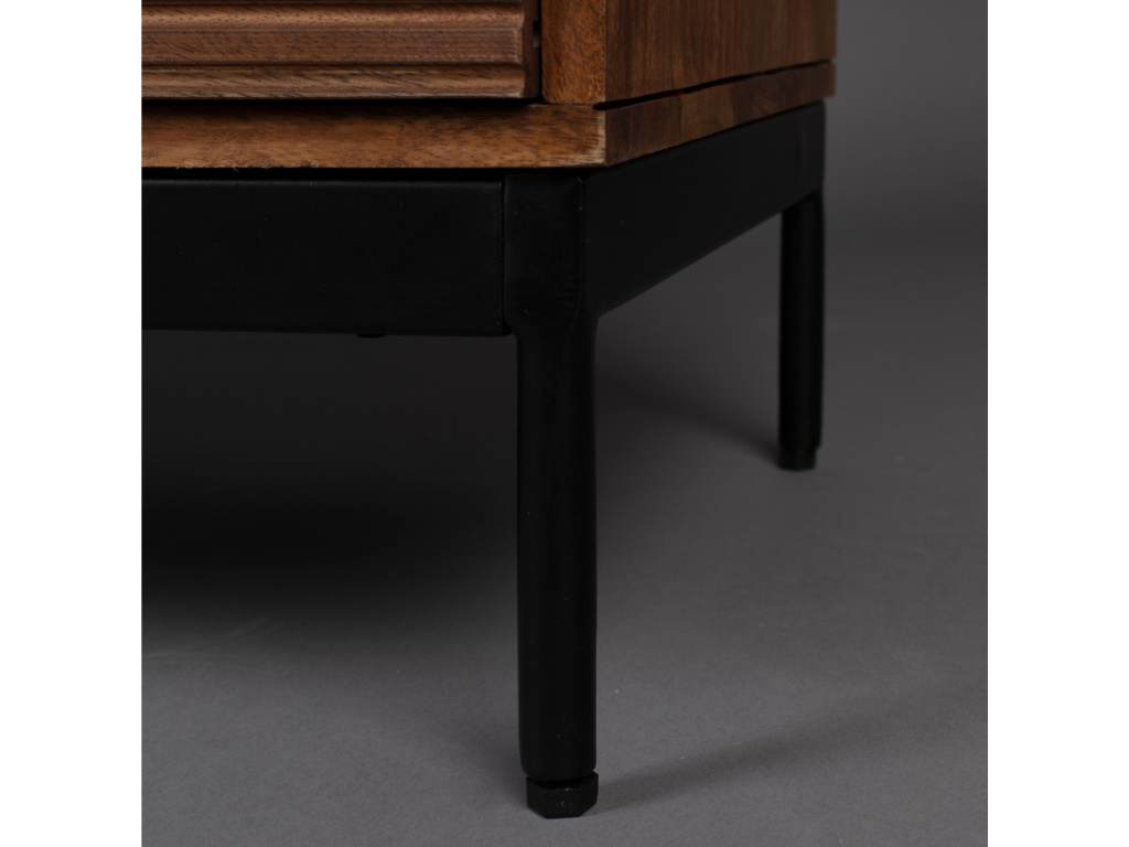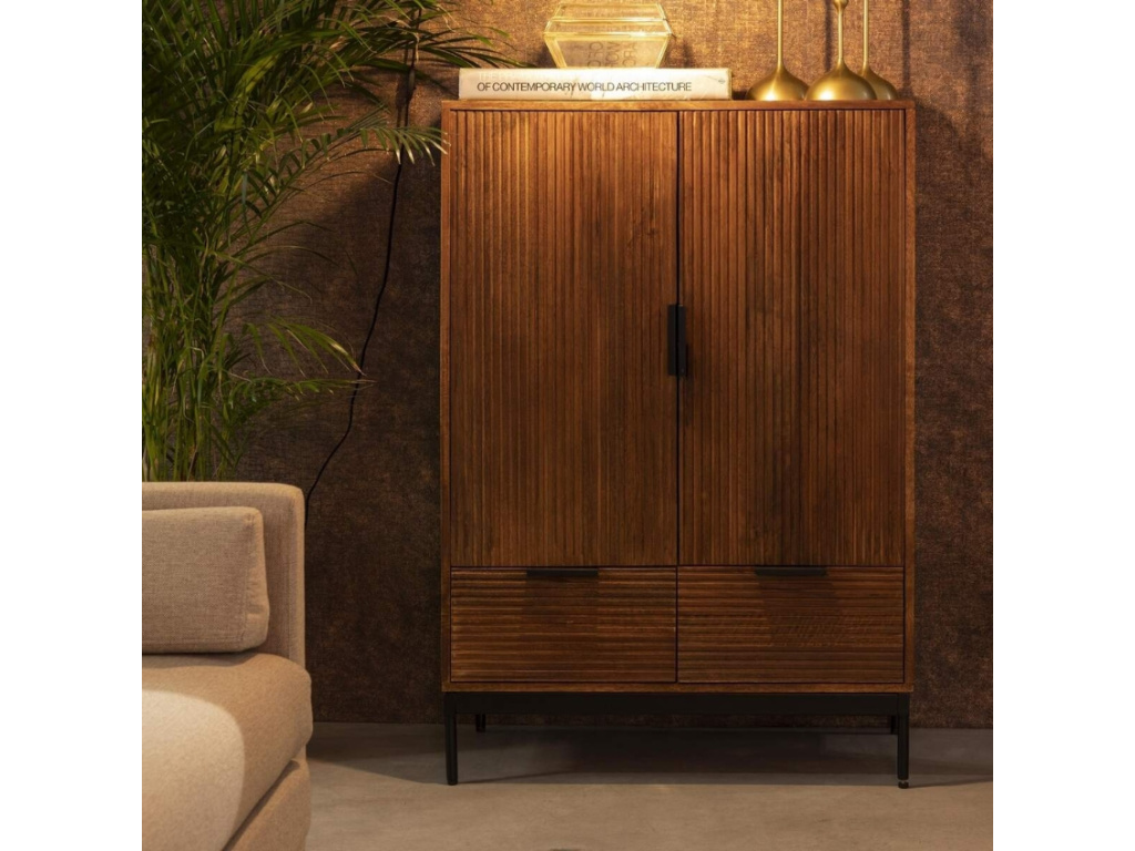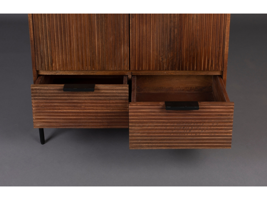 Elegantní série nábytku SAROO od nizozemské značky DUTCHBONE se line v duchu moderny a retra zároveň. Komoda představuje nadčasový kus nábytku, vyrobený z nesmrtelné kombinace dvou materiálů – dřeva a kovu. Mangové dřevo je na povrchu dvířek a zásuvek frézováno do pruhů, které určují charakter celého kousku a dodávají mu vintage vzhled. Dvířka snadno otevírají pomocí jednoduchých kovových rukojetí, které se dřevem perfektně ladí. Komodu doplňuje stabilní kovová podnož, která jí dodává na eleganci a vzdušnosti. Obohaťte svůj interiér o tento jedinečný kus nábytku a slaďte ho s ostatními produkty ze stejnojmenné kolekce.