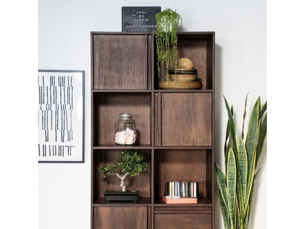 Dodejte svému interiéru styl s komodou Jimmy od značky Eleonora. Ta je vyrobena z mangového dřeva, které v kombinaci s černě lakovanou kovovou podnoží a minimalistickým designem vytváří lehký a elegantní dojem. Jimmy nabízí dostatek úložného prostoru díky sedmi policím a dvěma zásuvkám, kam snadno uložíte vše potřebné – od oblečení po doplňky, knihy nebo dekorace. Skvěle se hodí nejen do obývacího pokoje, ale také do ložnice nebo chodby. Pro jednotný vzhled interiéru můžete svou domácnost obohatit také o televizní stolek, komodu a skříň z kolekce Jimmy.