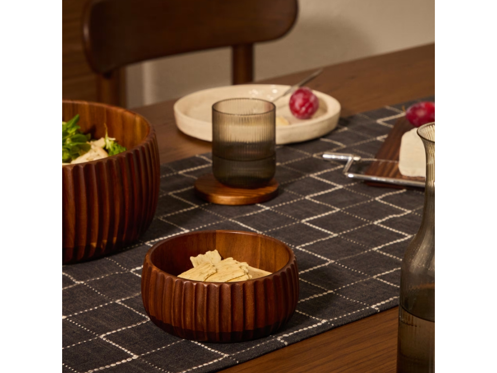 Série kuchyňských potřeb Kave Home Rommu dokonale zútulní vaši kuchyni a přinese do ní dotek přírody. Použité akátové dřevo se pyšní výraznou přírodní kresbou, která dělá každý kousek jedinečným, a díky FSC certifikaci si můžete být jistí, že pochází z odpovědného lesního hospodářství. V sérii najdete misky, prkénka, mlýnky na koření i podtácky – vaše kuchyně i jídelna tak mohou být krásně sladěny.