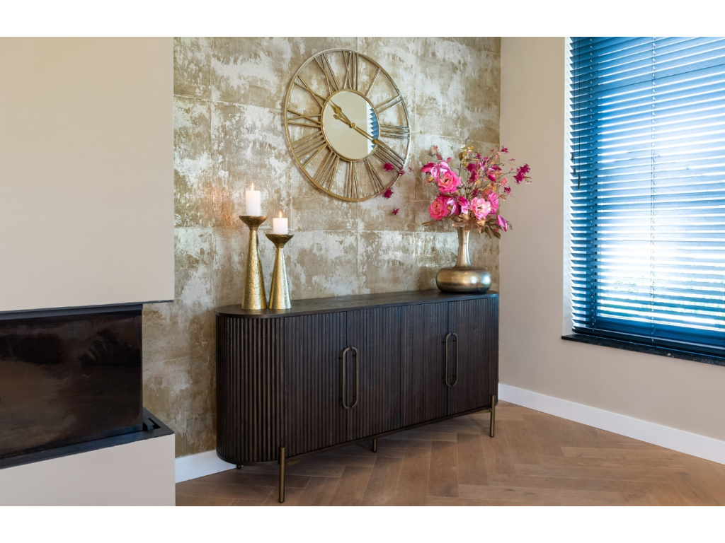 Unikátní design - je vystihující popis celkového vzhledu komody Luxor od značky Richmond Interiors. Oválné tělo, žebrovaný design a teplo dubového dřeva perfektně souzní v kombinaci s kovovými úchyty a subtilní podnoží ve zlaté barvě. Tento kousek doladí interiéry v moderním a skandinávském stylu. Zkombinujte nábytek z kolekce Luxor a vytvořte si tak dokonale sjednocený styl vašeho domova.