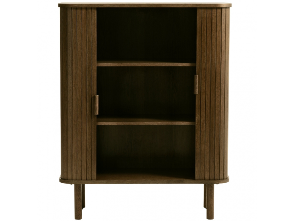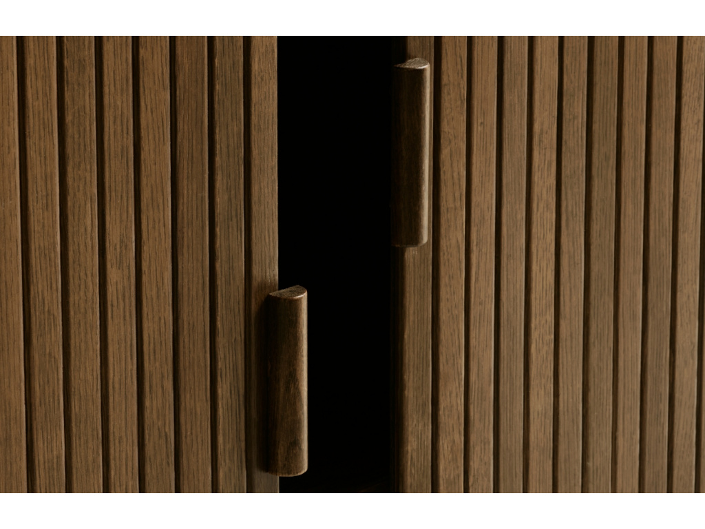 Komoda Cavo od značky Unique Furniture bude estetickým a praktickým kouskem vašeho interiéru. Je vyrobena z masivního dubového dřeva a dubové dýhy v hnědém provedení. Cavo disponuje praktickým úložným prostorem ve formě tří polic, které jsou ukryty za posuvnými dvířky. Nechte se okouzlit spojením krásy hnědého odstínu dřeva a jednoduchým funkčním designem s promyšlenými detaily! Designový motiv žebrování podtrhne celkový dojem komody a dodá ji unikátní vzhled.