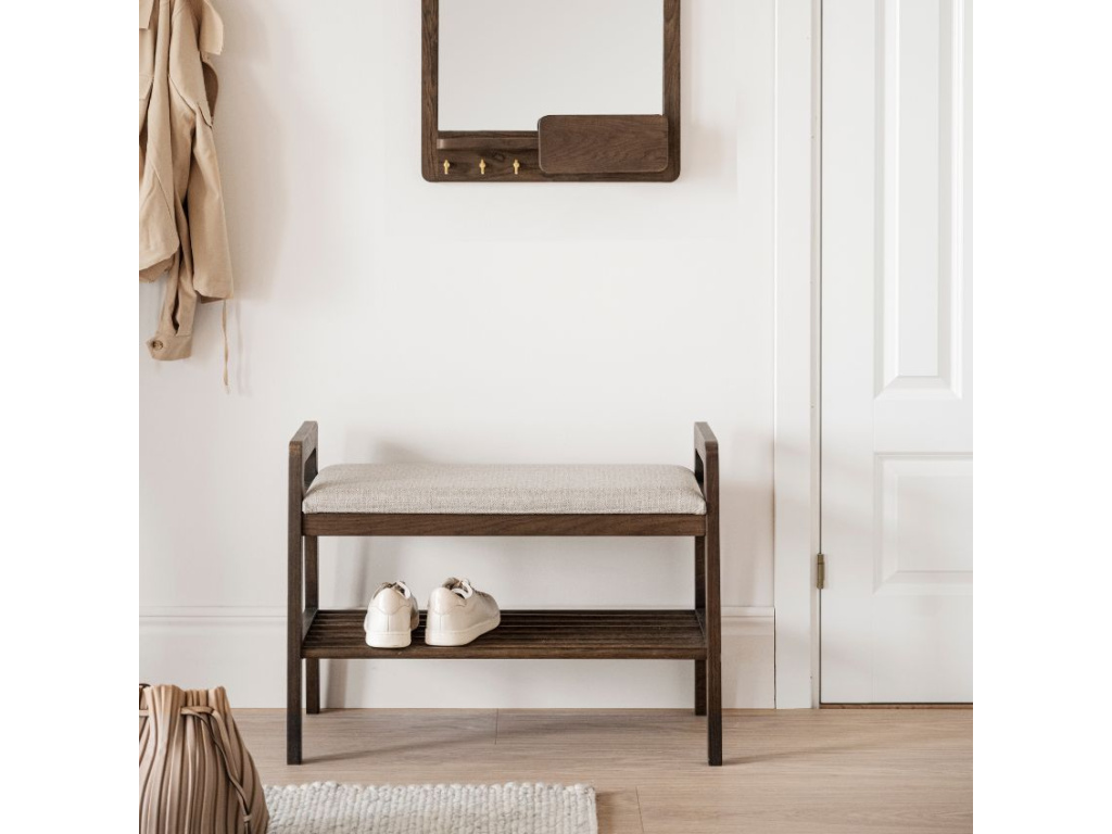 Podívám seHnědá dubová lavice ROWICO INVERNESS 75 cm s béžovým sedákem