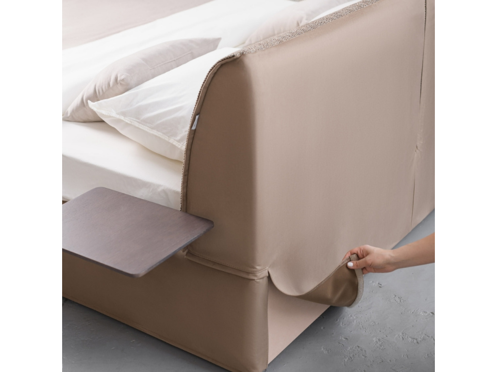 Postel Novara ztělesňuje nadčasovou eleganci a pohodlí, které zve k odpočinku. Měkké prostorné čelo poskytuje příjemnou oporu při čtení či relaxaci, zatímco dekorativní lemování po obvodu rámu jemně odráží jeho tvar a dodává posteli osobitý, hravý charakter. Praktickou výhodou modelu je kromě úložného prostoru také snímatelný potah – díky němu můžete postel snadno udržovat v dokonalé čistotě a bez obav tak volit i světlé odstíny látky. Unikátní je také kombinace dvou druhů čalounění, která umožňuje sladit postel s klidnými, neutrálními tóny i s kreativnějšími interiérovými řešeními. Novara je postel, která spojuje estetiku, funkčnost a komfort – stane se přirozeným centrem vaší ložnice.
