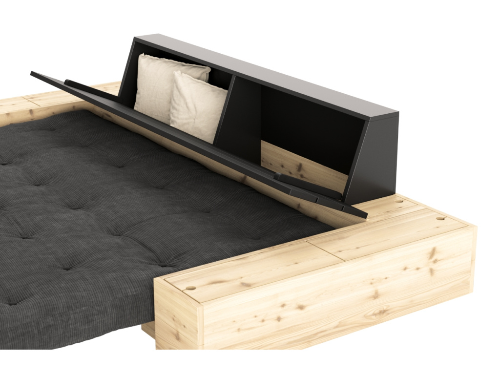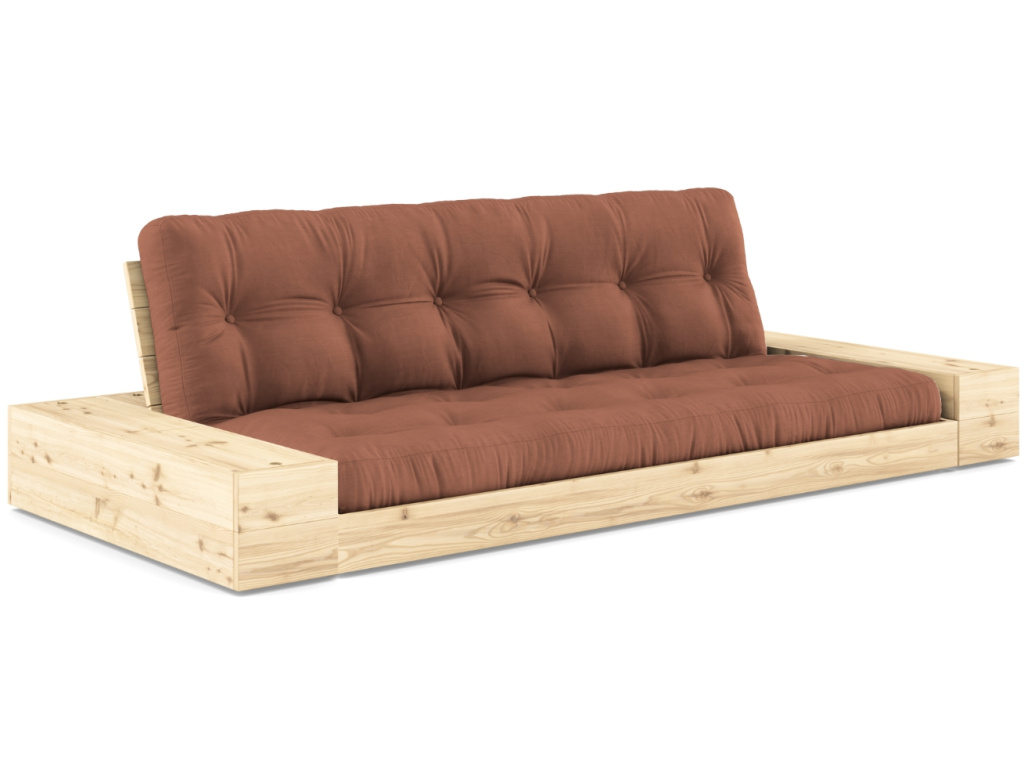 Dvoumístná rozkládací pohovka Base od dánské značky Karup Design je dle slov designérů ztělesněním moderního a multifunkčního bydlení. Jednoduchým pohybem se pohovka promění na praktické a pohodlné lůžko. Konstrukce z masivního borovicového dřeva s FSC certifikací je doplněna o kvalitní 14 cm vysokou futonovou matrací, která v sobě kombinuje recyklovaná vlákna a 4cm pěnu. Praktickým detailem této pohovky je úložný prostor v zadní opěrce, kde pohodlně uschováte lůžkoviny, a v postranních boxech, kam můžete umístit rozečtené knihy či televizní ovladač. Úložné boxy je možno otevírat shora nebo z boku – je jen na vás, jakou variantu si zvolíte. Pohovka Base se skvěle hodí do skandinávsky či minimalisticky laděných domovů, kde se přizpůsobí všem vašim požadavkům. Představuje skvělé řešení především pro menší interiéry, kde oceníte další místo na spaní. Vybrat si ji můžete v mnoha barvách matrací, ve variantě bez úložných boxů nebo s černě lakovaným čelem.