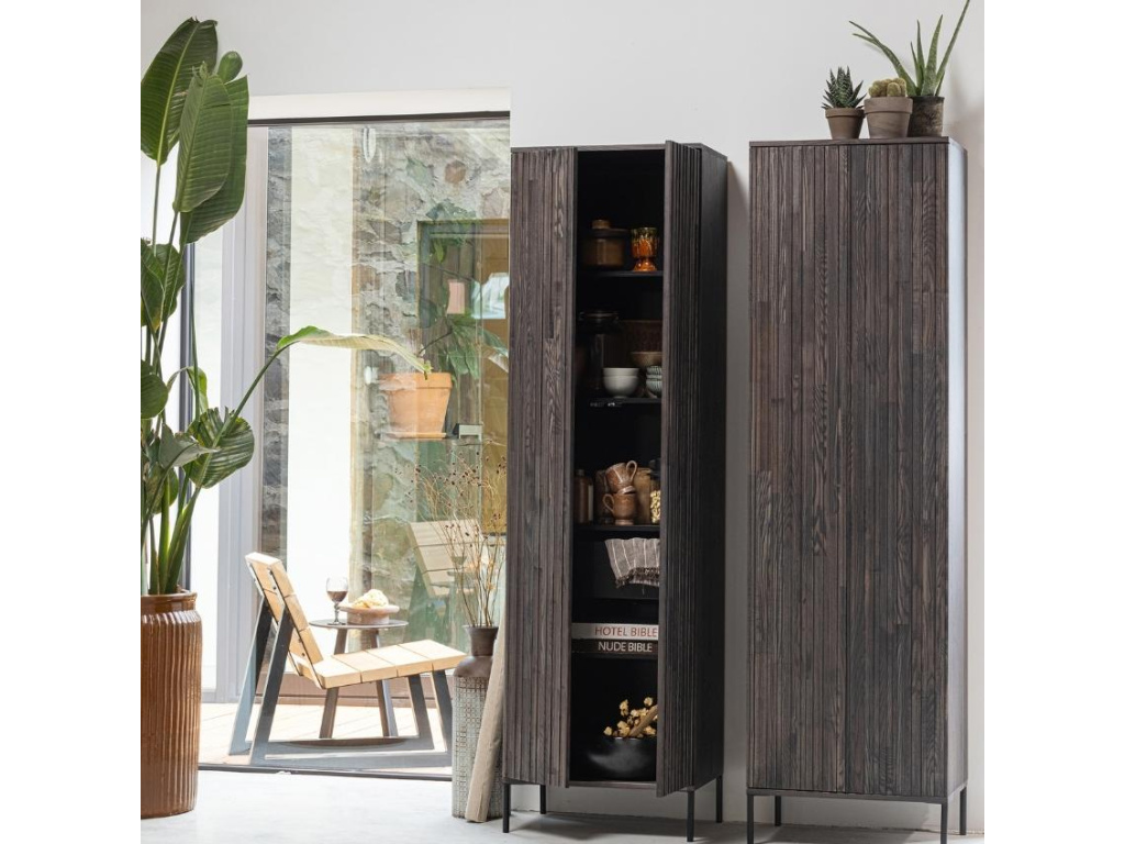 Designová šatní skříň Gravia z jasanového dřeva mořeného v odstínu espresso od značky Hoorns je výjimečný kus nábytku inspirován moderními trendy. Charakteristickou vlastností skříně Gravia je moderní design dvířek s žebrovaným vzorem se zavíracím systémem Soft close. Hřejivý vzhled skříně Gravia skvěle zapadne do interiérů ve skandinávském a rustikálním stylu. Skříň disponuje úložným prostorem pěti polic a jedné zásuvky. Vyberte si i z dalších produktů ze série Gravia a doveďte tak svůj interiér k dokonalosti.