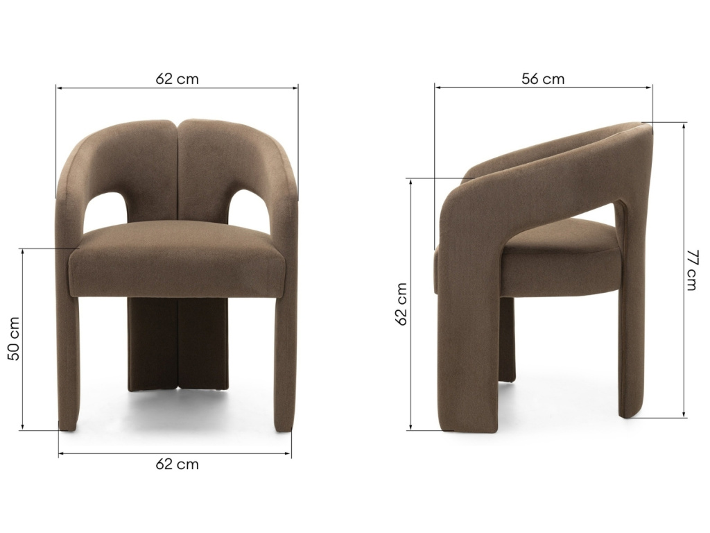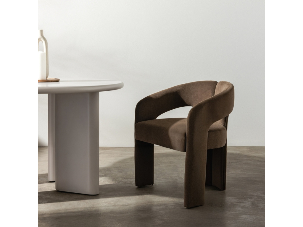 Židle Joel v sobě spojuje výjimečné pohodlí a elegantní design. Její zaoblené tvary jí dodávají osobitý charakter a dělají z ní nepřehlédnutelný kousek v každém interiéru. Měkké čalounění v hnědé látce působí svěže a útulně zároveň, díky čemuž židle krásně doplní moderní jídelnu i útulný obývací kout. Komfortní sedák, opěrka zad a elegantně tvarované područky zajišťují pohodlné sezení i při delších chvílích u stolu. Joel je židle, která spojuje styl, kvalitu a pohodlí – ideální volba pro ty, kdo chtějí, aby jejich jídelní prostor působil příjemně, moderně a s dotekem elegance.