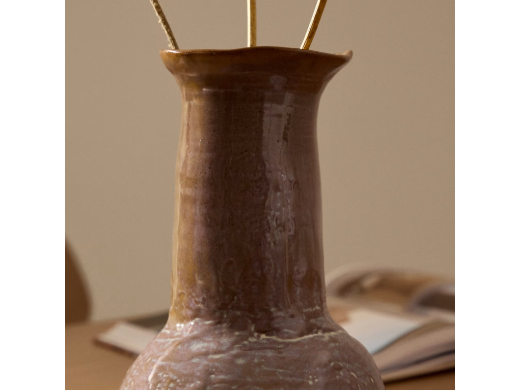 Váza Olaris vnese do vašeho interiéru nádech přirozené elegance a rustikálního kouzla. Její hnědá glazura s jemnými barevnými přechody vytváří originální povrch, který vynikne jak samostatně, tak v kombinaci s dalšími dekoracemi. Díky minimalistickému tvaru a teplým zemitým tónům snadno zapadne do různých stylů zařízení – od boho po rustikální a venkovský. Dostupná je ve dvou velikostech, které můžete libovolně kombinovat a vytvořit tak harmonické aranžmá na stole, polici nebo komodě. Váza Olaris je stylovým doplňkem, který zaujme i bez květin!