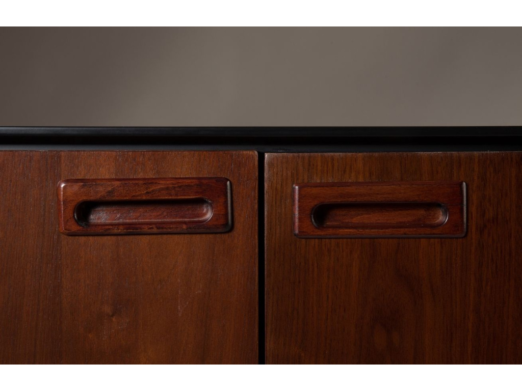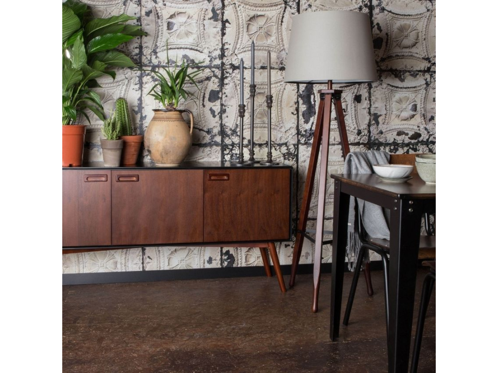 Dvířka a poličky z ořechové dýhy obklopené černým rámem z dřevovláknité desky přinášejí do všech interiéru nádech designu z 50. let minulého století. Tato vysoká komoda se třemi dvířky a třemi poličkami v každé z nich poskytuje mnoho místa pro uložení jakýchkoliv věcí ve Vaší domácnosti. Perfektní stabilitu komody Juju zajišťuje podnož z jasanového dřeva v barvě ořechu.