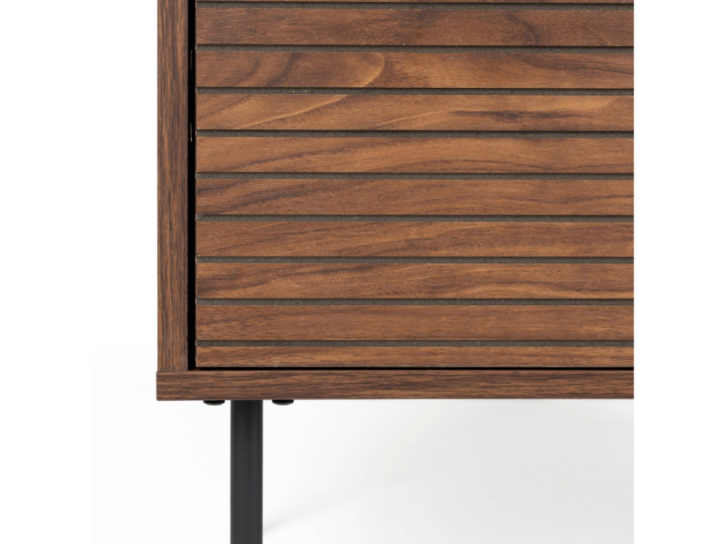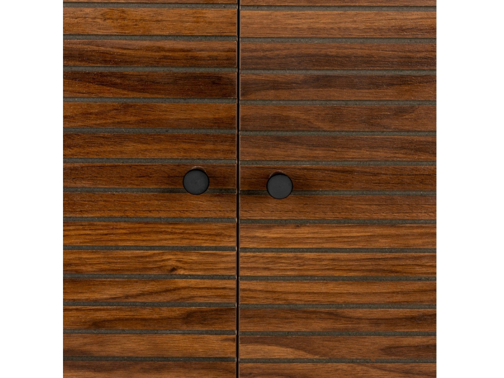 Dostatečný úložný prostor je nezbytností každé domácnosti a vy jej můžete získat díky elegantní komodě STRIPES od značky White Label Living. Korpus je vyroben z MDF a ve spojení s černě lakovanou kovovou podnoží bude komoda nápaditým estetickým prvkem, a především praktickým společníkem. STRIPES nabízí dostatek úložného prostoru v podobě čtyř prostorných polic s uzavíratelnými dvířky. Svým vzhledem se hodí do rustikálních nebo industriálně zařízených interiérů a dá se snadno kombinovat s ostatním dřevěným nábytkem, popřípadě s dalšími přírodními materiály. Obohaťte svůj interiér o tento jedinečný kus nábytku a slaďte ho s ostatními produkty z kolekce STRIPES.