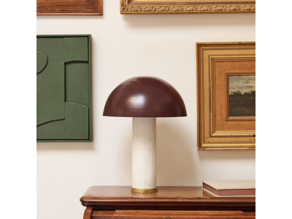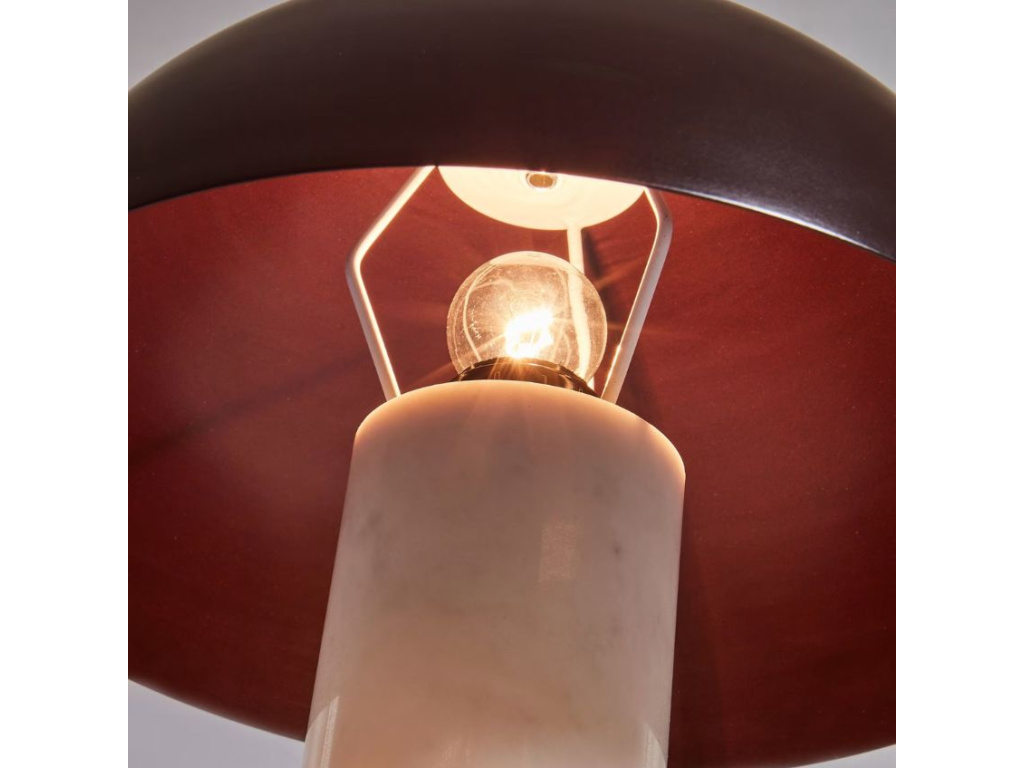 Stolní lampa Kave Home Zorione představuje skvělý způsob, jak přidat styl a hřejivé světlo do vaší předsíně, na váš noční stolek nebo třeba do vašeho čtecího koutku! Elegantní spojení hnědě lakovaného kovového stínidla a bílé mramorové podstavy s sebou přinese nádech luxusu a v interiéru dokonale vynikne.