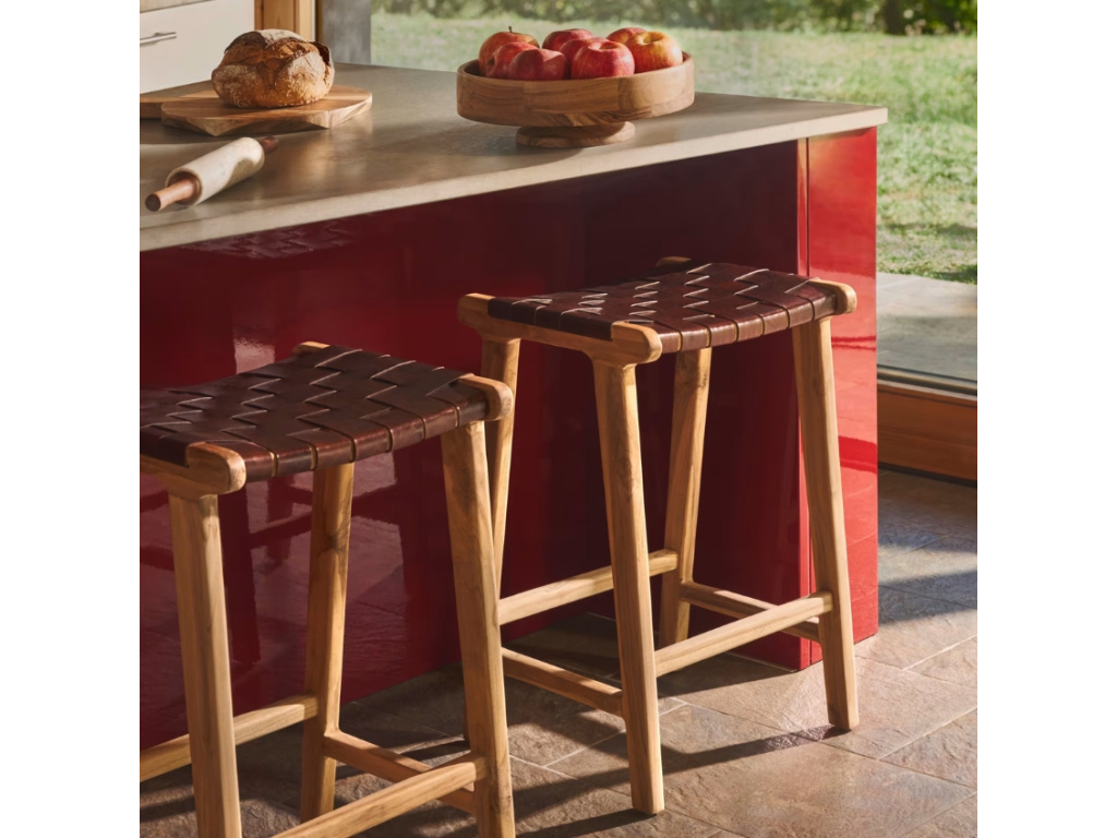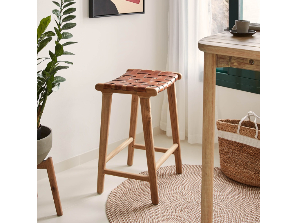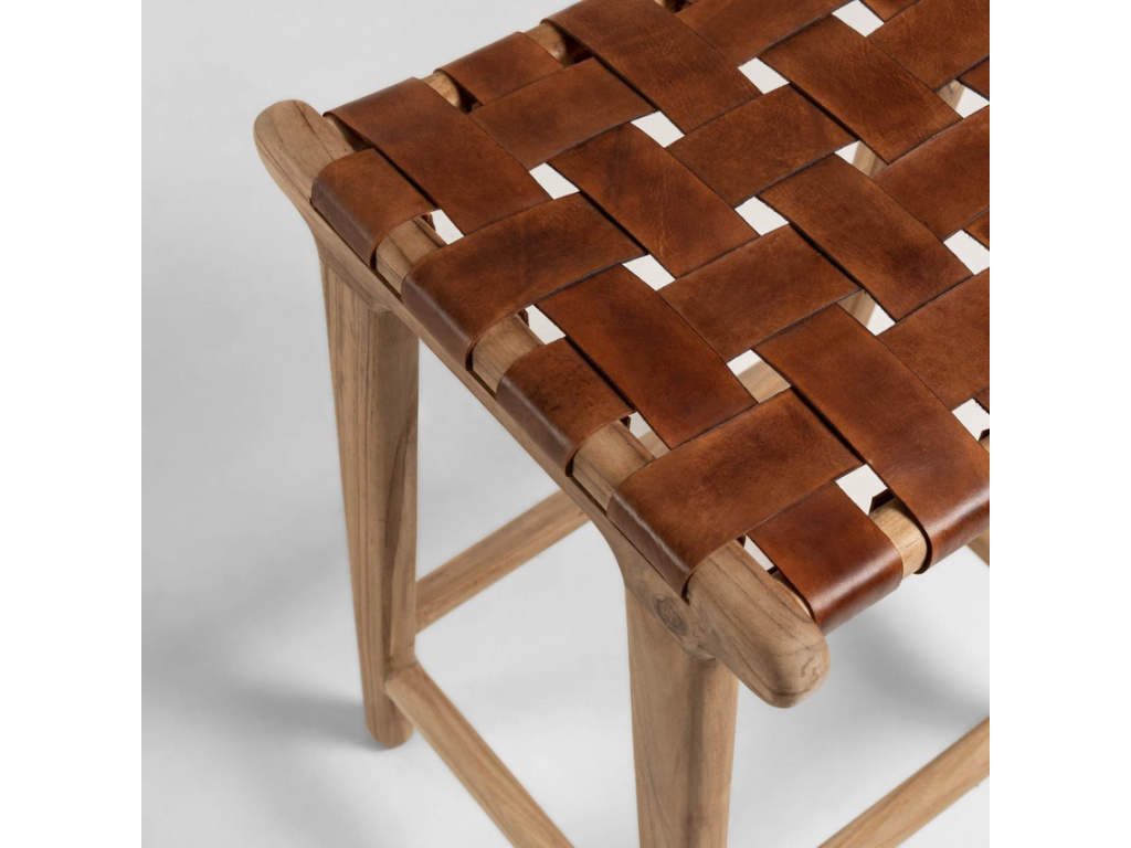 Sedák barové židle Calixta je tvořen výpletem z pravé kůže hnědé barvy. Konstrukce je vyrobena z masivního teakového dřeva, které se svým přírodním zbarvením k sedáku skvěle hodí. Díky použitým přírodním materiálům je každá židle originál - má vlastní tóny i struktury. Udělejte si pohodlí a vneste do vašeho interiéru styl s barovou židlí značky Kave Home.