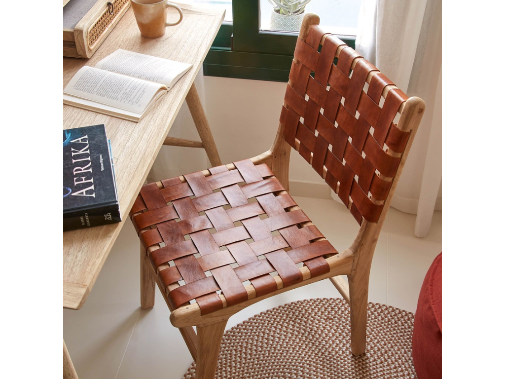 Opěrka a sedák židle Calixta jsou tvořeny výpletem z pravé kůže hnědé barvy. Konstrukce je z kvalitního týkového dřeva má přírodní zbarvení, takže se k výpletu skvěle hodí. Díky použitým přírodním materiálům je každá židle originál - má vlastní tóny i struktury. Udělejte si pohodlí a vneste do vašeho interiéru styl s jídelní židlí značky Kave Home.