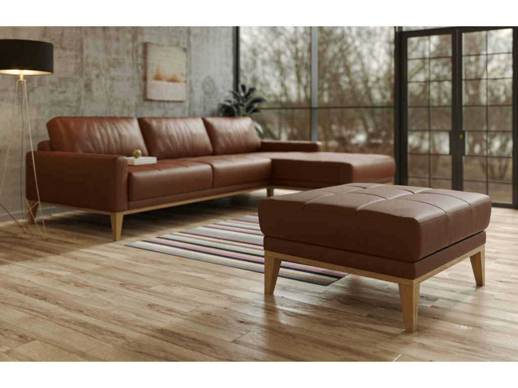 Designová podnožka Musso Tufted od značky MESONICA bude díky svému stylovému a nadčasovému provedení skvělým a pohodlným doplňkem obývacího pokoje. Podnož vyrobená z bukového dřeva ladí s čalouněným sedákem v hnědé kůži. Prošívání sedáku dodává na atraktivitě. Hodí se do moderních obývacích pokojů s přírodními prvky.
