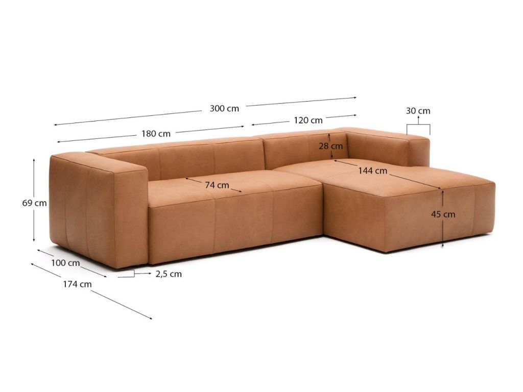 Kožená rohová pohovka Blok 300 cm, pravá