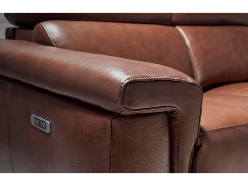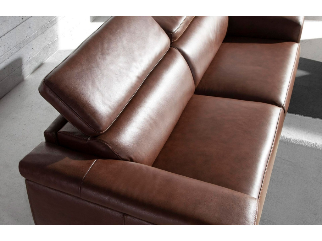 Trojmístná pohovka, která vás přesvědčí nejen svým nadčasovým designem, ale i vysokou úrovní pohodlí. Kvalitní hovězí kůže v luxusním hnědém odstínu dodá interiéru luxusní atmosféru a zároveň odolá každodennímu používání. Díky elektrickému relaxačnímu systému si snadno přizpůsobíte sklon sedáku i opěradla. Nezávisle nastavitelné opěrky hlavy podpoří správné držení těla a poskytnou maximální komfort. Elegantní kovová podnož podtrhne moderní charakter této pohovky a přinese do vašeho domova lehkost a vzdušnost.
