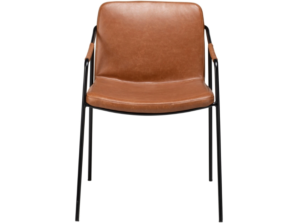 Designová jídelní židle Boto značky DAN-FORM vás zaujme hned na první pohled svým lehkým nádechem retro stylu. Tenká, černě lakovaná podnož minimalisticky navazuje na područky. Sedák je vyrobený ze stylové ekokůže ve velmi stylové hnědé barvě, stejně jako opěrka zad. Stylovým bonusem je širší pruh stejného materiálu omotaný kolem područek.
