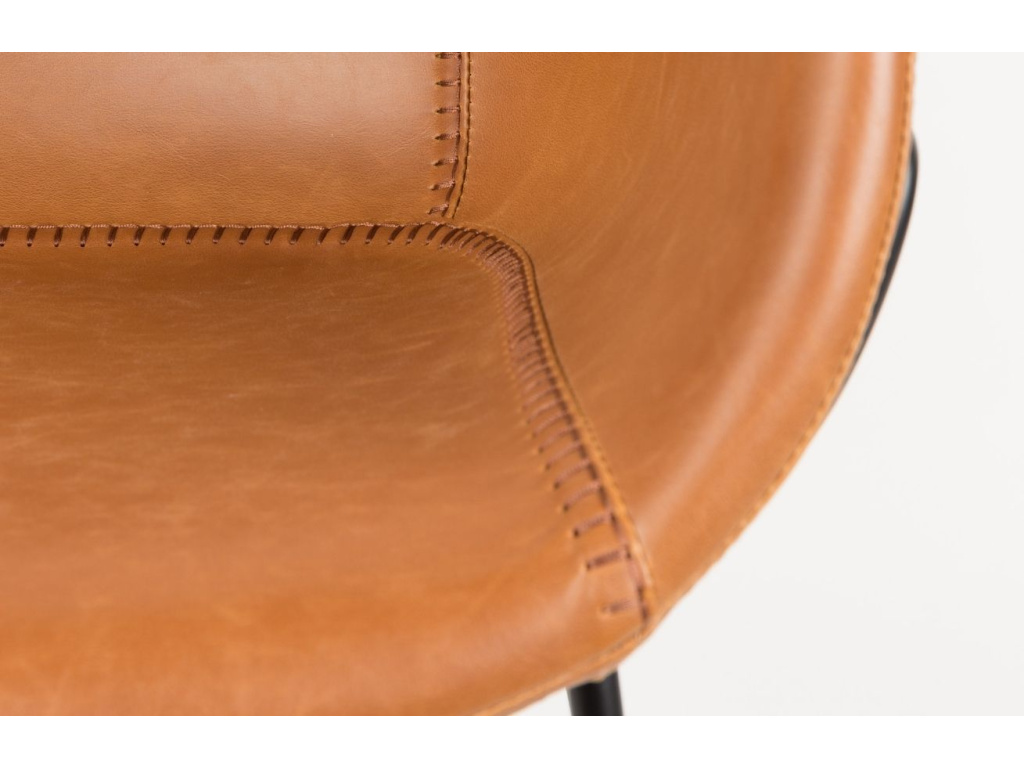 Moderní designová jídelní židle ZUIVER FESTON dodá vaší jídelně prvek elegance. Měkký, široký a velice pohodlný sedák z hnědé ekokůže je vsazen do kvalitní kovové podnože v černém provedení.
