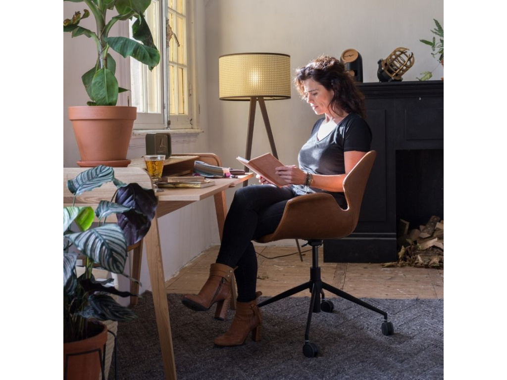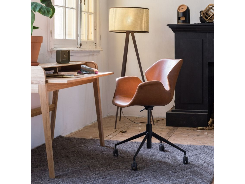 Kancelářská židle ZUIVER NIKKI inspirovaná velice oblíbeným designem z 50. let 20. století. Úchvatný vzhled této židle zajišťuje čalounění z hnědé ekokůže synchronizované s elegantní černou podnoží opatřenou kolečky.