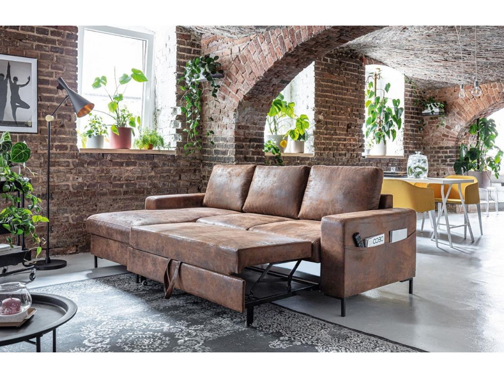 Rohová rozkládací pohovka Lofty Lilly od značky Miuform, spojuje funkčnost postele a pohovky v jednom nádherném designu. Lofty Lilly v sobě snoubí to nejlepší z obou světů, aniž by to bylo na úkor vzhledu a kvality. Krásné vintage čalounění látkou imitující kůži je skvělým doplňkem do domácnosti v moderním i vintage stylu. Tento výjimečný kus nábytku je vyroben tak, aby vyhovoval vašim potřebám a poskytl nejen pohodlné posezení, ale také ubytoval vaše hosty s další spací plochou jednoduchým vysunutím lůžka. Vyberte si i vy tu pravou z řady Lofty Lilly.