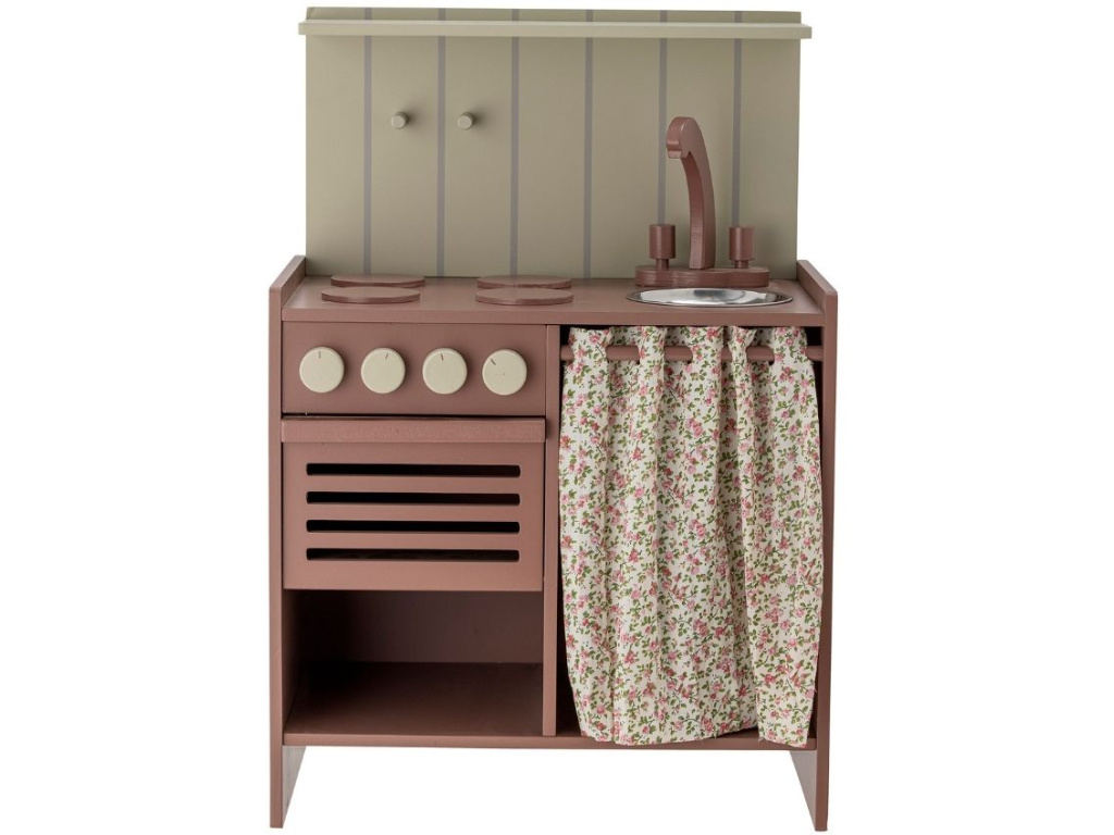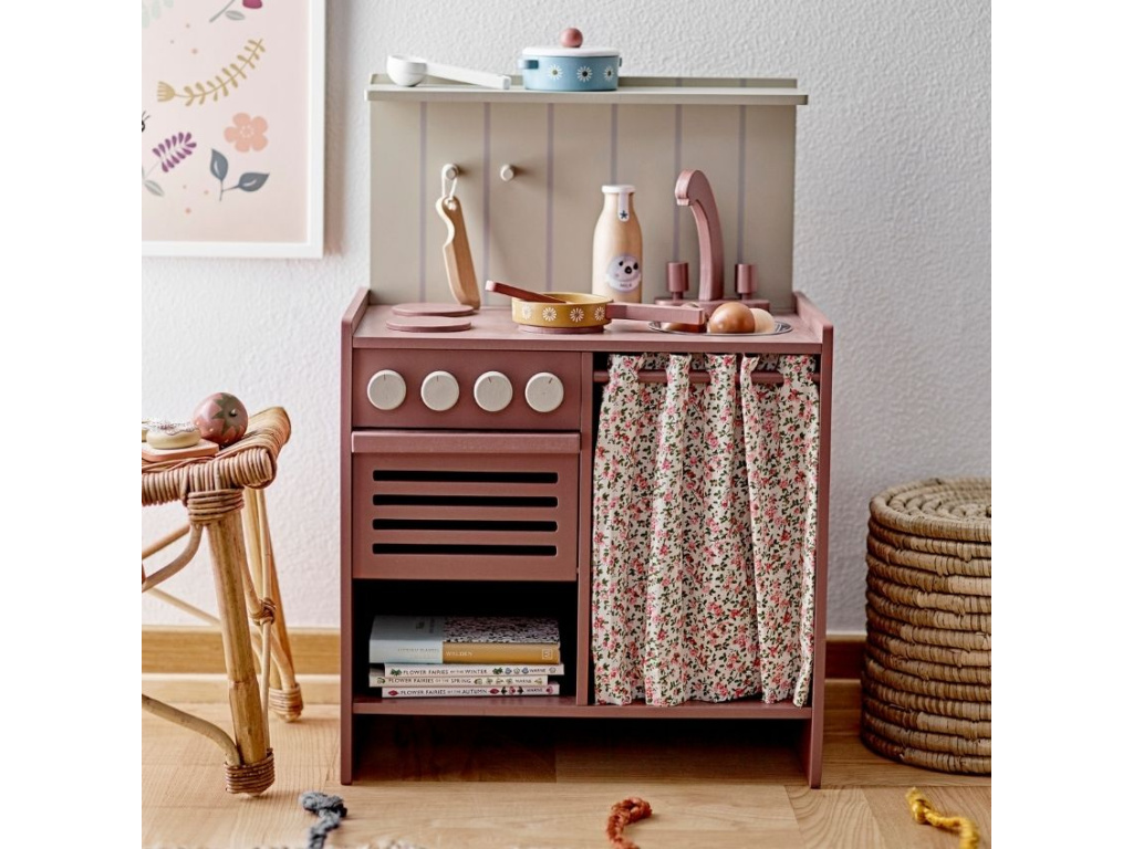 Dětská kuchyňka Bloomingville Pippi nesmí chybět v žádném dětském pokoji. Děti si s ní vydrží hrát dlouhé hodiny a užijí si při tom legraci. Kuchyňka je vyrobena z MDF desek a lotosového dřeva a najdete na ní sporák, troubu i dřez s baterií. Pod dřezem je umístěn závěs s květinovým vzorem, za kterým se ukrývají dvě police. Další police se nachází pod sporákem - kuchyňka tak nabízí spoustu úložného místa k odložení dětského nádobí a kuchyňských potřeb.