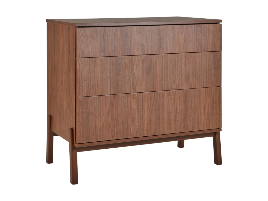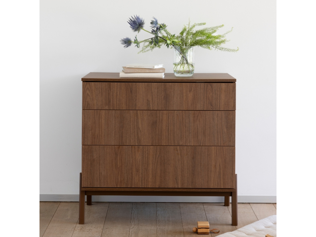 Komoda Ashi představuje vytříbený styl a pyšní se jak estetickou, tak praktickou funkcí. Minimalistickou konstrukci, vyrobenou z laminované dřevotřísky, doplňuje masivní podnož z bukového dřeva. Tři praktické zásuvky skvěle poslouží jako úložný prostor například na oblečení, hračky či přebalovací doplňky. Volné místo na komodě lze pak využít na různé dekorace, nebo doplnit o přebalovací nástavbu od značky Quax a rázem tak získat přebalovací pult.