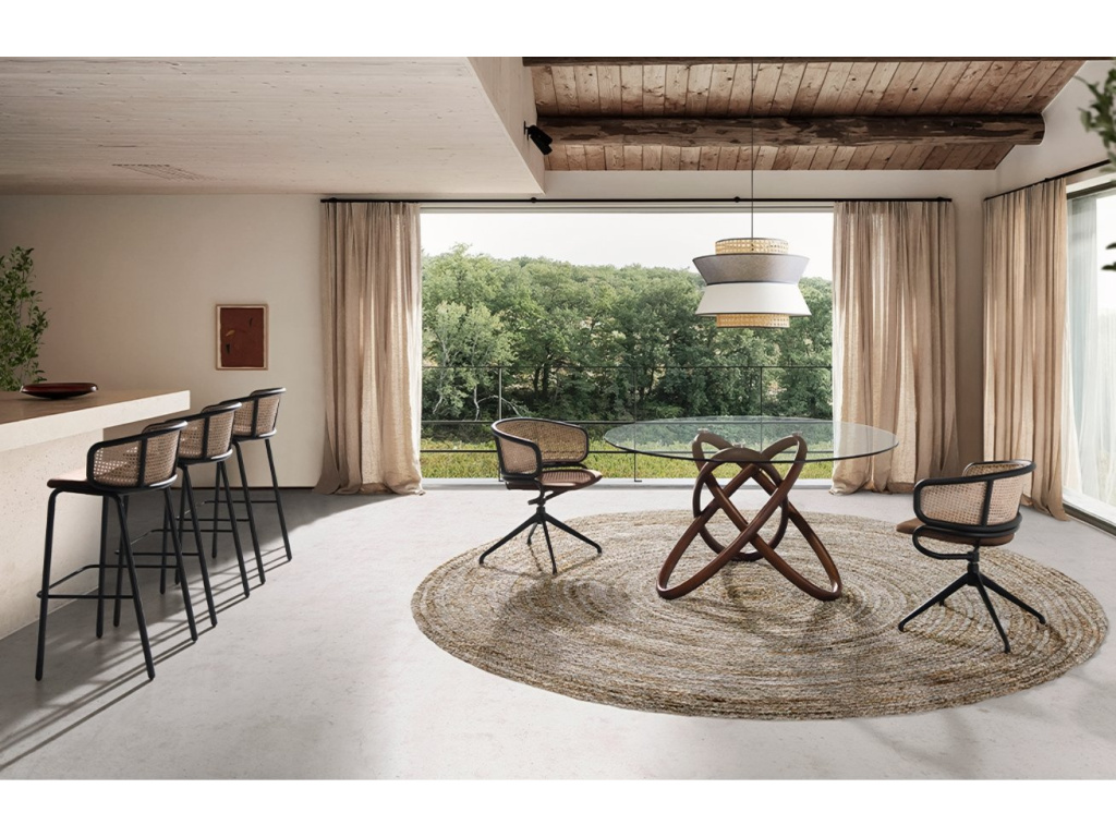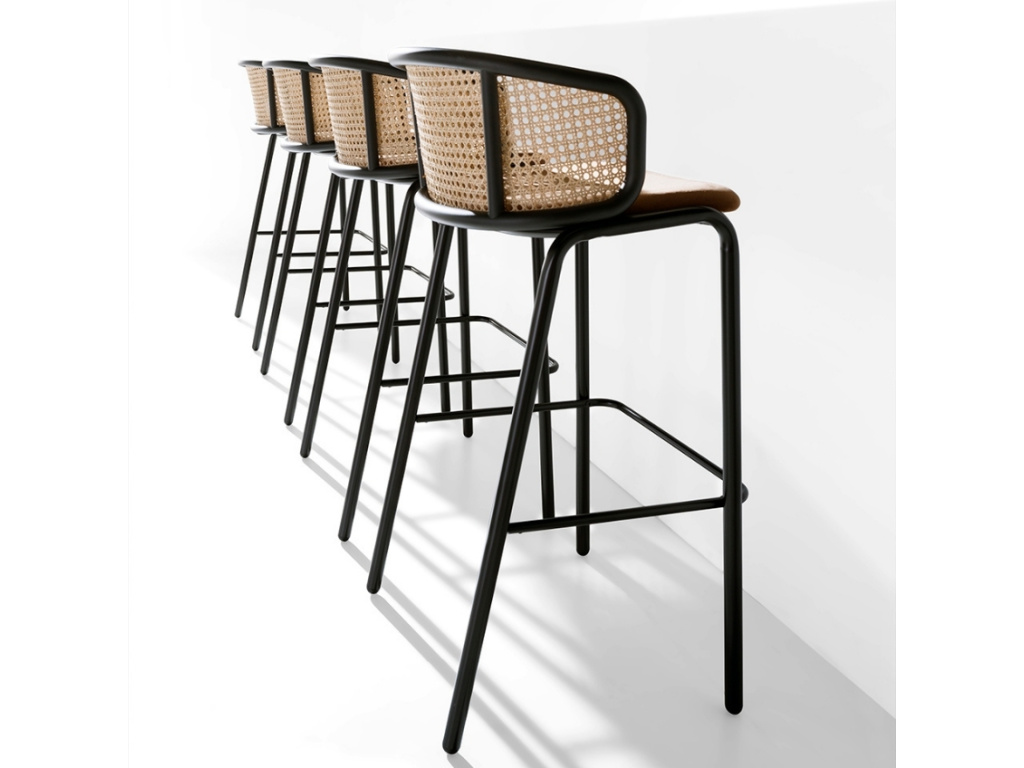 Barová židle Angel Cerdá spojuje moderní design s komfortem a stylem. Hnědé sametové čalounění sedáku a přírodní ratanové opěradlo vytvářejí jedinečný kontrast, který doplní každou jídelnu i kuchyni. Konstrukce a podnože z černé nerezové oceli dodávají židli nadčasový a avantgardní vzhled. Tento elegantní kousek nabízí maximální pohodlí –bude perfektní volbou pro ty, kteří chtějí do svého interiéru vnést nádech elegance a moderního designu.